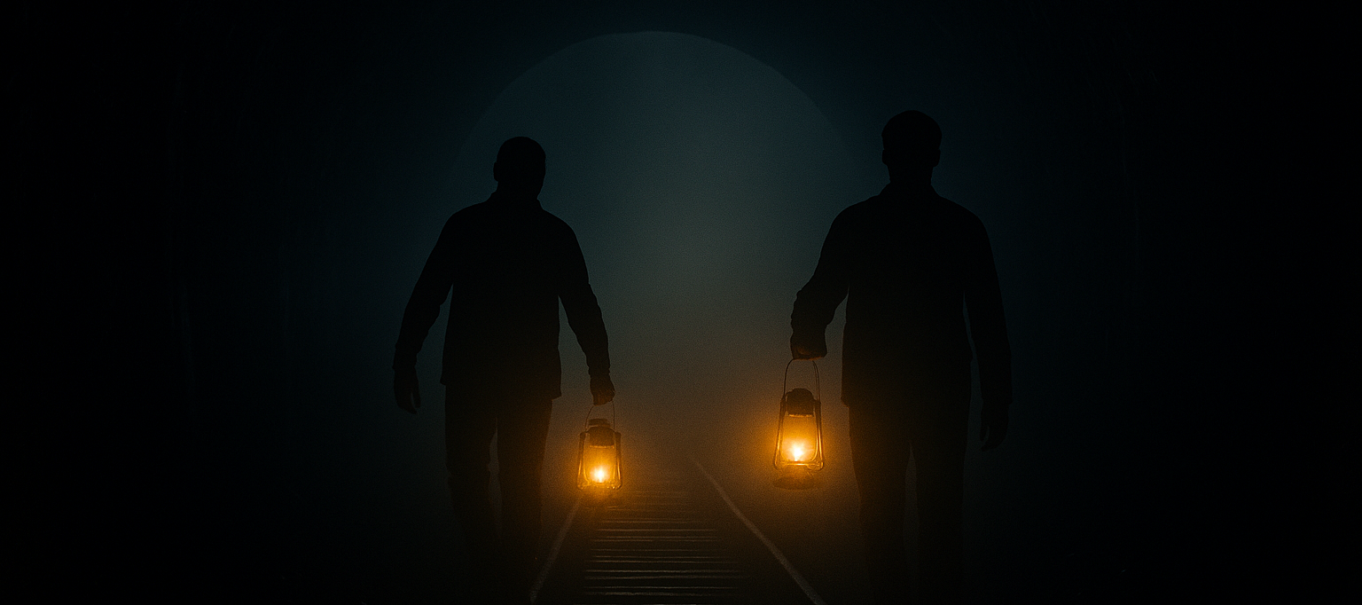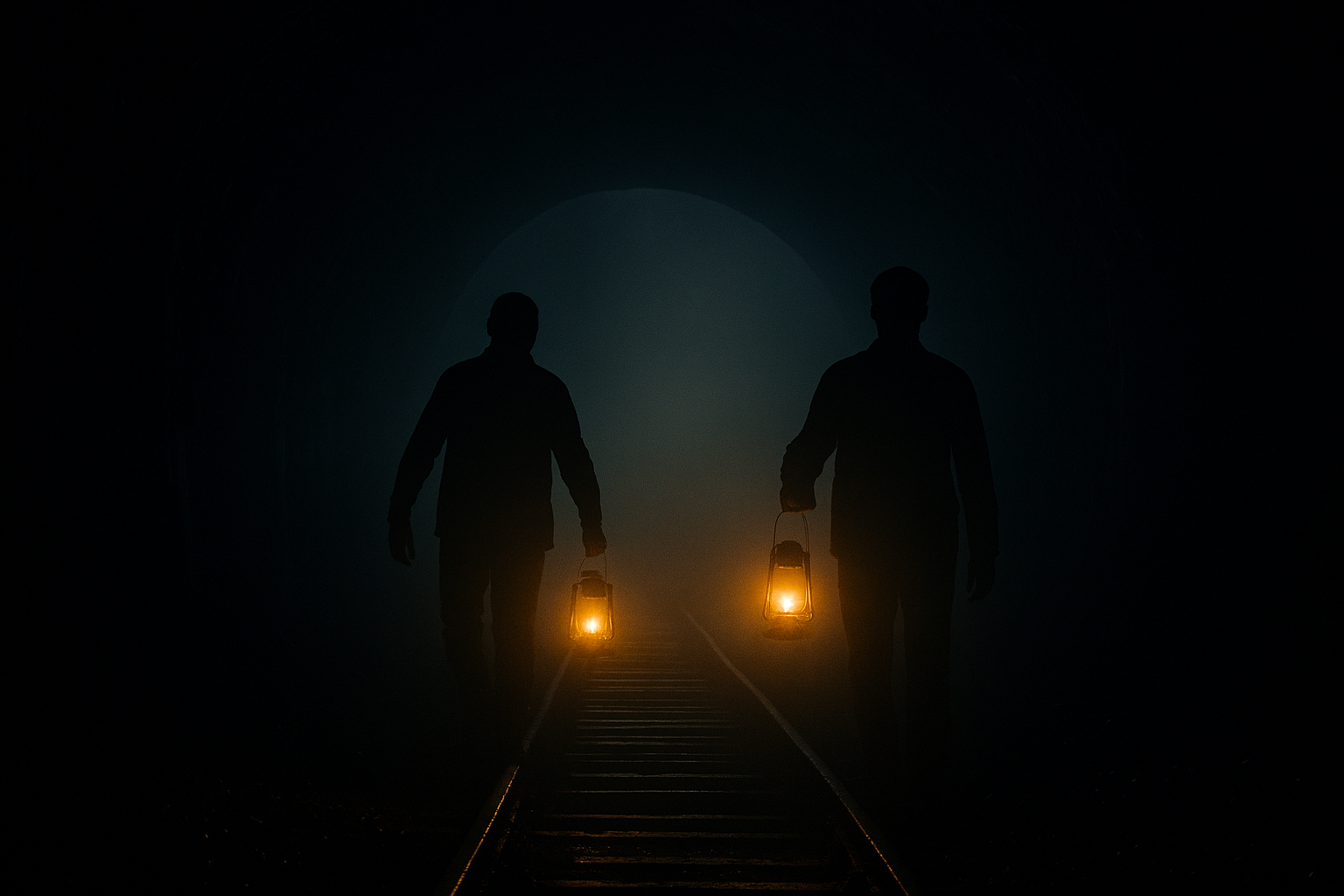 Bernard gripped Ebram’s upper arm. “Wait—let’s get some light first.” He rummaged through Ebram’s backpack for a lantern and lit the gas with a match. Then he raised the lantern high above his head and turned in a slow circle to illuminate the scene. What they saw wasn’t a grave or a sunken dwelling—but a railway track. The two men looked around, confused.