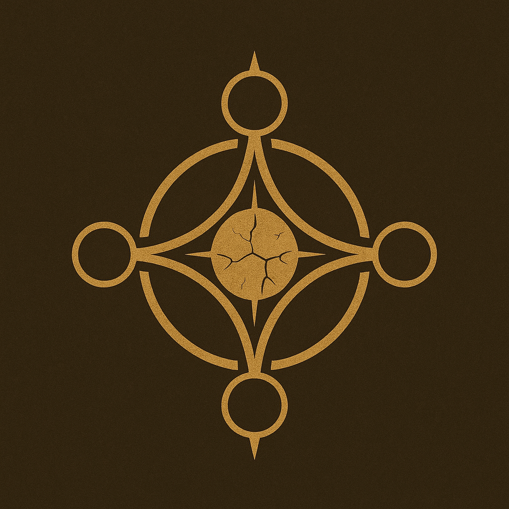 Le cinque sfere simboleggiano i cinque principali domini della magia, quella al centro è fratturata a testimonianza della fragilità dell'utilizzo delle arti mistiche.