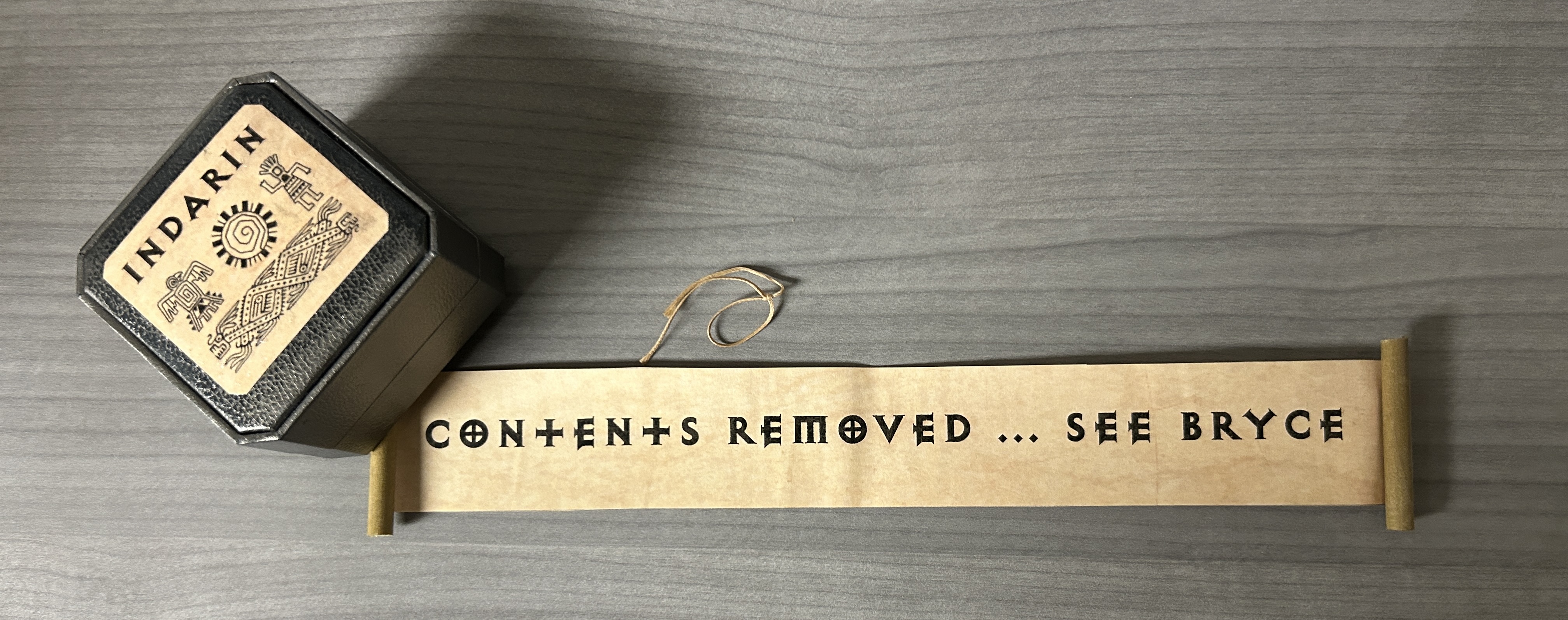 We tell Rowan about Indarin. He won’t take us to the hall of records and what not. The true knowledge is how to get to a place. “Follow me!” We end up in the merchant ward. A big building with bronze double doors - walks right past it to a small blue door. An old adventurer’s guild. “Traverson’s Reposistory of Knowledge”. Ornate desk and behind is a pudgy bulbous thing - Jabard. Behind him is a wheel and a aisle with chickens and crystal balls. Random nick-nacks. He tries to dismiss us. Rowan tells us to offer garnish. Cita offers 5gp. Perhaps we’d like to make a donation. Common donation for finding a gate is 120 gp. Thoradin gives him 115gp and Stormy gives 5gp. He does some weird thing with eggs and a rat. "Siny hasn't bawked for quite a while!", Jabard exclaims. Cracks and egg. Inside is a little box. Luck that you have some to me and our house of knowledge. Indarin in common and Indarin in the language of Indarin. Tiny scroll. “Contents removed, see Bryce”. He yells at Bryce. “You can’t keep stealing the information out of the database.” Bryce is in his study. Bowl shaped library, circular rows. Middle area w/ railing. A huge lizard with big teeth. What action does Thoradin take? We talk with him. “This is a good one!”Rewards Granted