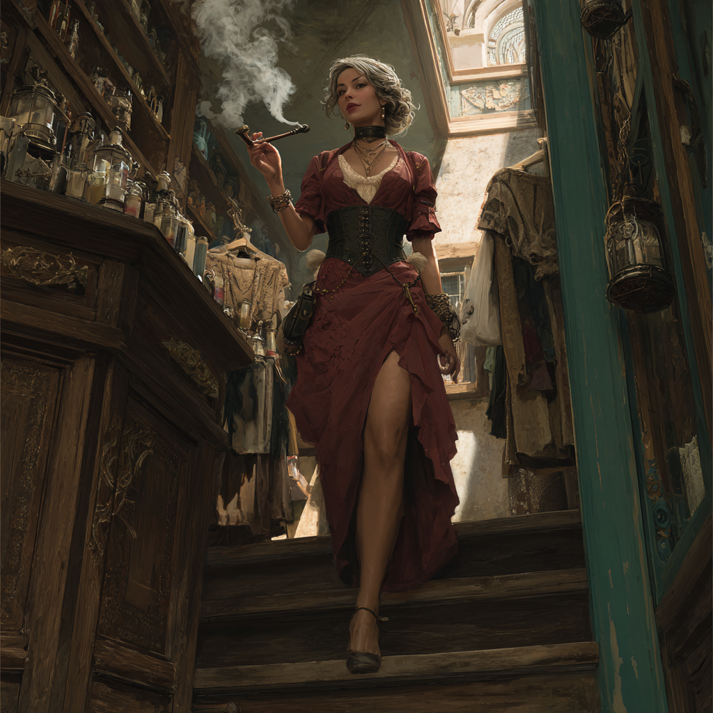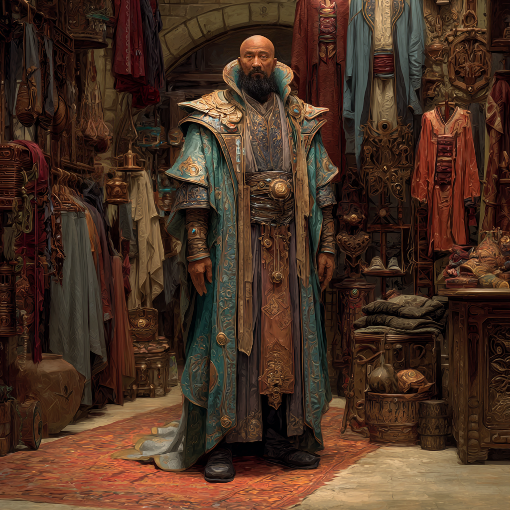 He takes us to a clothier. If she will accept Rashid, then he’ll get a great outfit. Glimmer Thread. “Finch, who is that?” behind us - a lady. She looks down at Rashid. “These garments much be gone! They can’t exist in my place! Put them in the 12th level of the abyss!” Thoradin pours an ale and he pulls out a pipe. A helper offers him the lady’s finest. Lizanthra Mung is the owner of the shop. Stormy is taking pictures of what’s happening. The helpers are layering heavylooking but light clothes on Rashid. 180 gp Rashid takes off the tattoo bandages. The chameleon paint that changes color. Iridesenct filigree, if you turn it just right you can see. in the center if the rune of magic that isn’t “there”.Indarin Research and Meeting Bryce