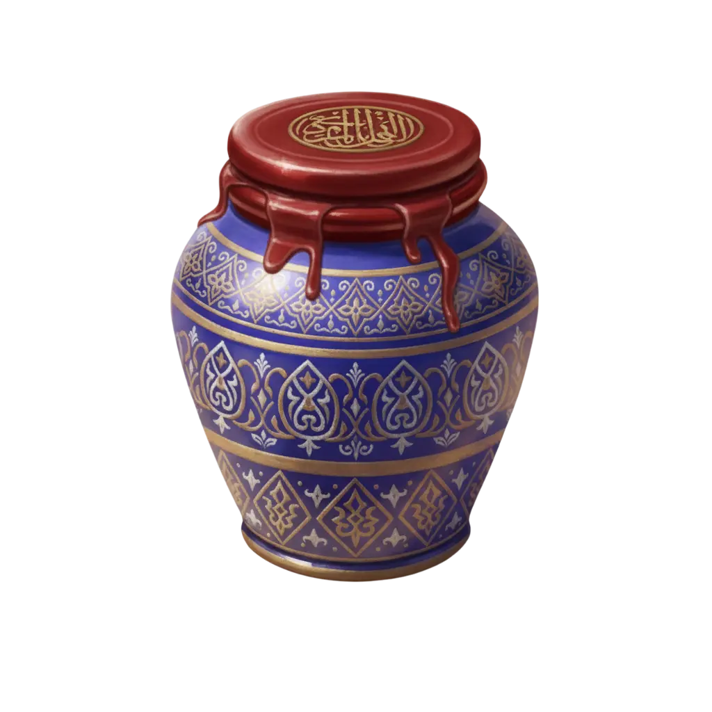 The jar’s heavy ceramic body is often rendered in dark, luminous color, a deep indigo or sapphire blue, a hue so rich it seems to hold the very darkness of the starry heavens. Sometimes, veins of pale, translucent jade weave through the glaze, like the cool waters of an oasis spring. Other times tiny white stars are worked into the glaze or is kept in the simple, abyssal black of a stormy night. While held, the pottery feels cold and empty no matter how heavy the sun burns as long as the lid is open. But all that changes when its closed: But all that changes when it’s sealed: the lid settles with a soft, final sigh, a sound often described as a breath let go by one's own mind.