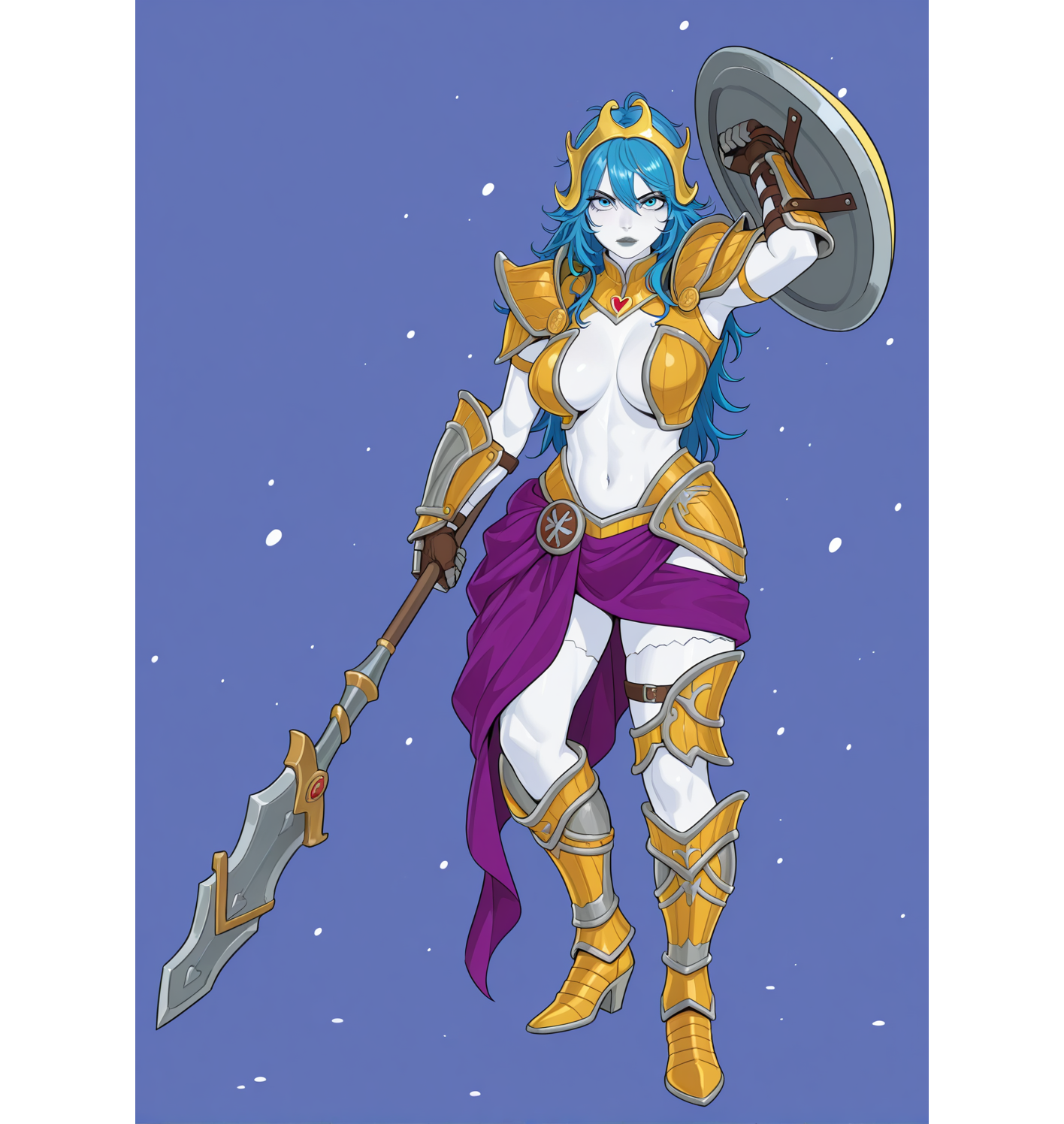 Their trademark is golden armor with elegant purple robes, reflecting the wealth and prosperity of Myravel. They are armed with shields and spears. Like all akreyans, their strength lies in defense thanks to their extraordinary physical toughness and resilience.