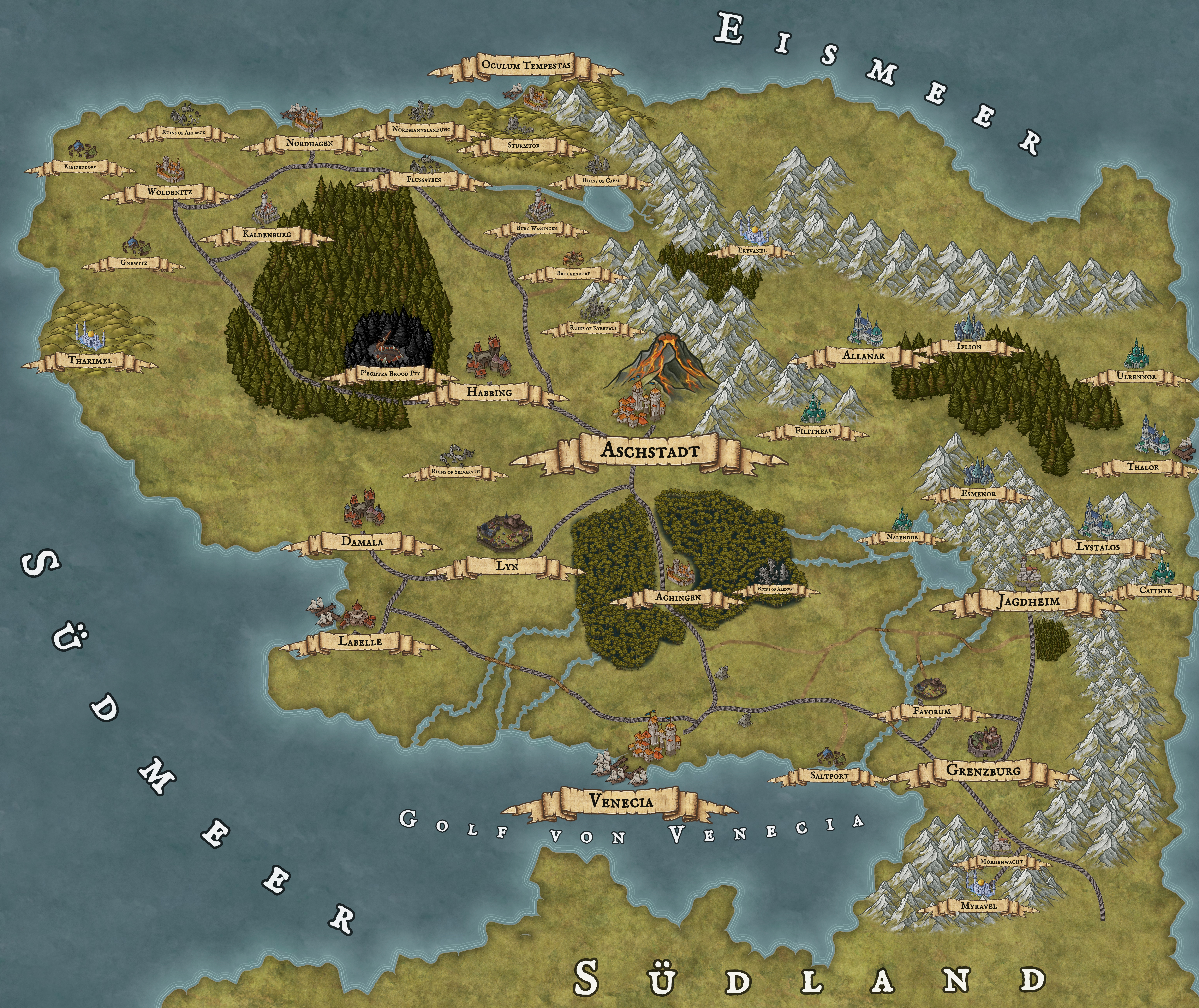 Gustav I. "Der Erboberer" attacked the elven realm of Vaenion in his attempt to conquer the territories of the forgotten human empire of old. This sparked the nearly 300 year conflict known as the Elf War. His son Theobald I. "Der Unterdrücker caused an outright rebellion by escalating the tense relations between the conqueror and the conquered.Illithor va Vaenyrael's Rebellion