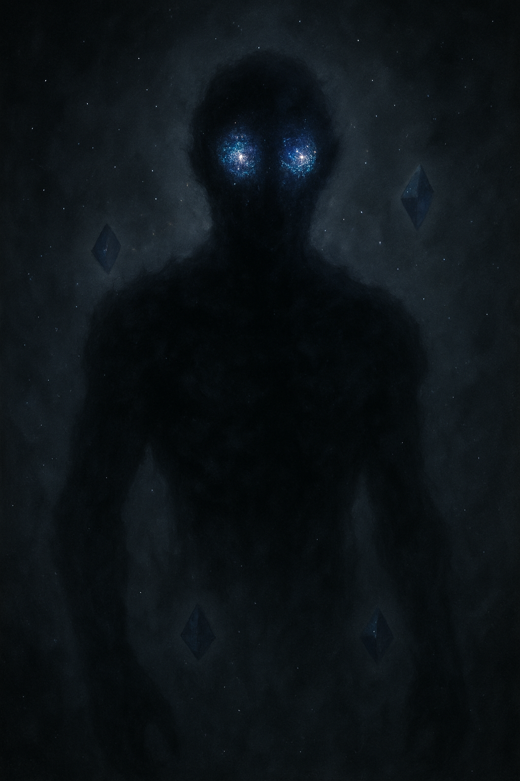 The Xarnathi are shadowy beings, that range in height depending on their will, some tall, others shorter. They distort light, and so remain almost completely invisible to the human eye, and only appear in people's peripheral vision. It's hard to give an accurate description to something that has rarely been seen, but from what has been recorded, the Xarnathi resemble humans, with two arms and two legs, a head, and rough facial features, that are blurry and not fully defined. Sometimes people see their eyes, which they claim to hold entire galaxies within. Although these claims are often seen as fake, due to the madness induced by looking at the figure's eyes.