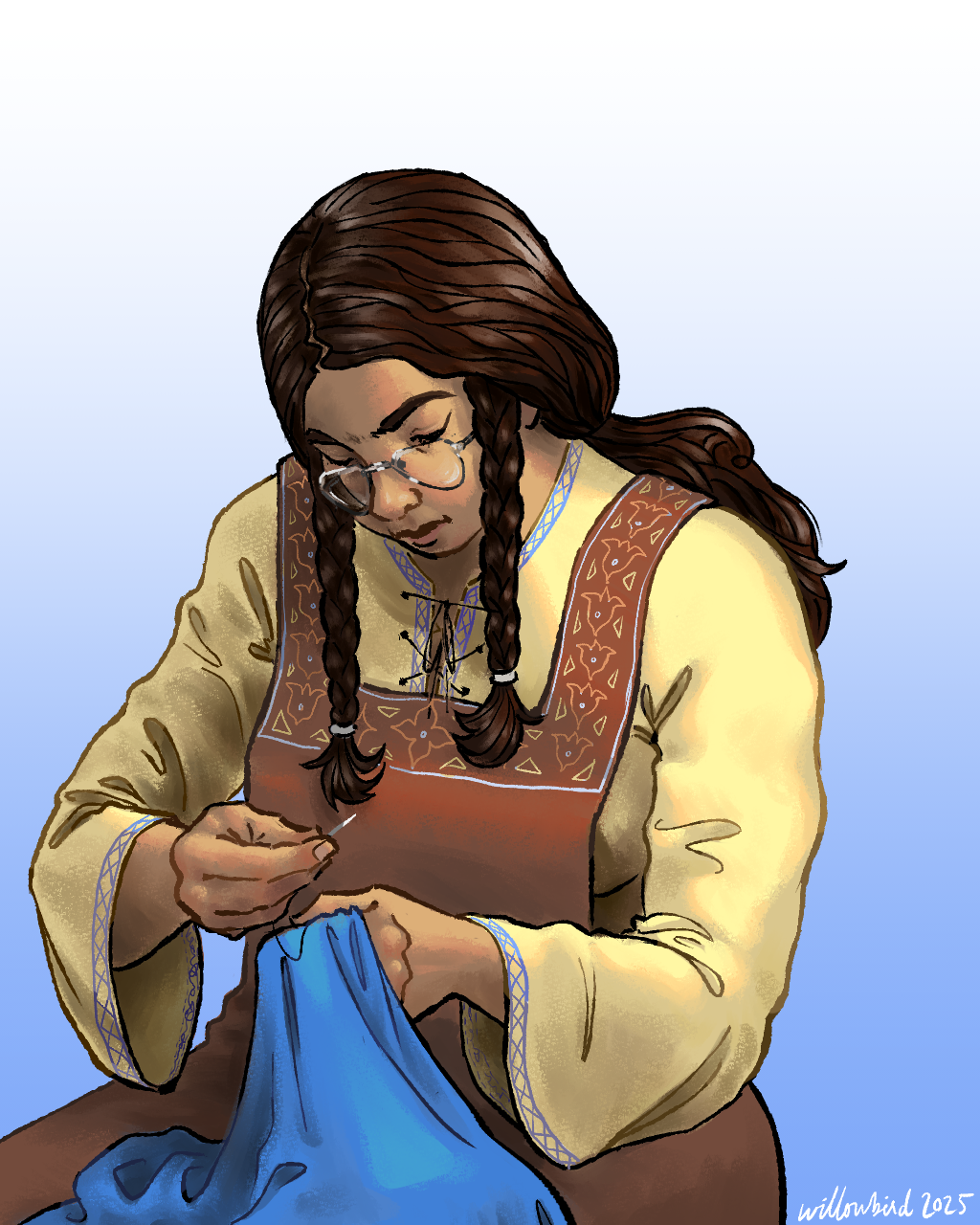 Though they began xyr mentorship in the field of history, Bird changed tracks to pursue textile work when an uptick in aer village's population created a need for more clothing to be produced and maintained. Despite it not being eir original passion, xe took to needlework well, and is on the track to becoming quite an accomplished tailor.