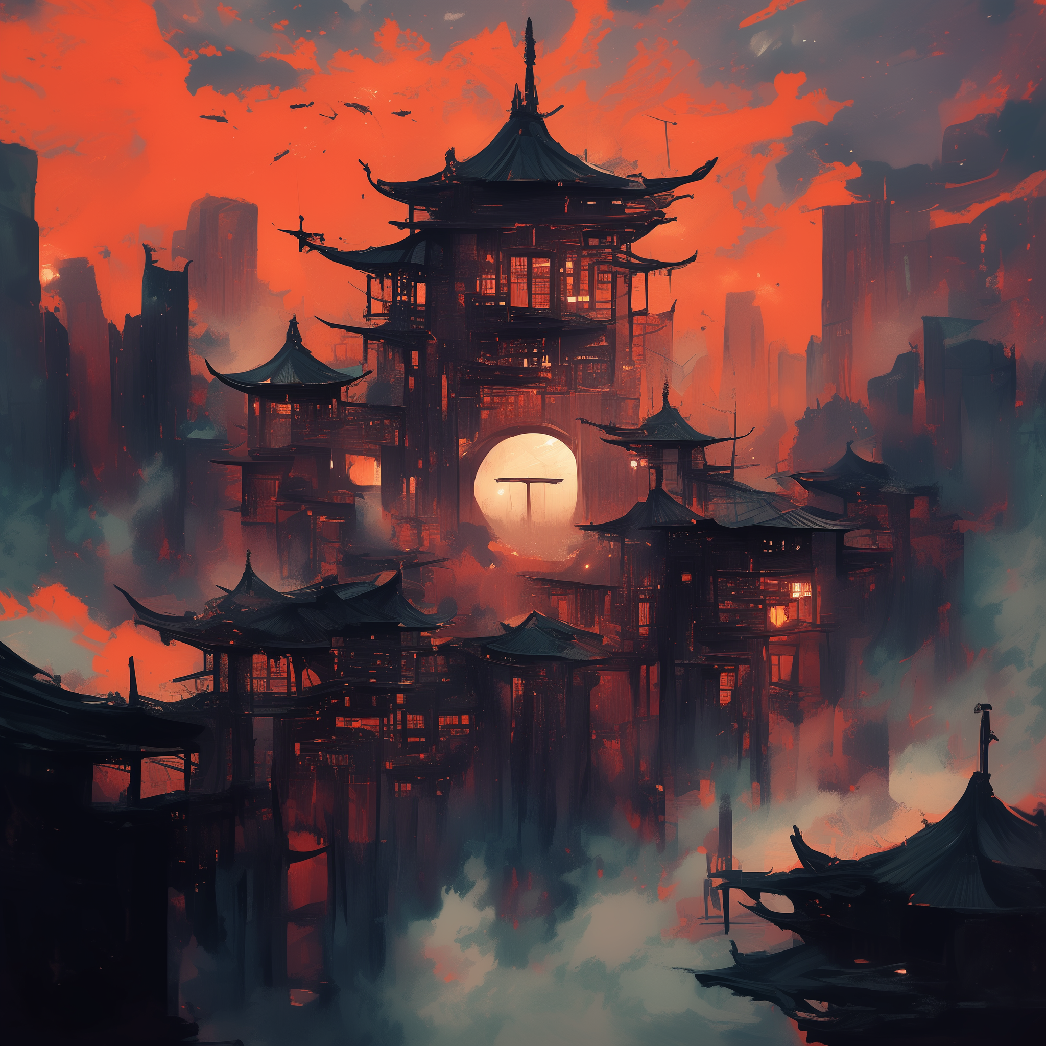 Saizen-Sou is perched atop a series of terraced cliffs overlooking a valley filled with hot springs and volcanic fumaroles. The city is designed to take advantage of the natural geothermal energy, with steam vents integrated into the architecture, giving the city a constant veil of mist. The architecture blends elegance and intimidation: tiered pagodas with crimson roofs, black lacquered wood, and glowing paper lanterns line the streets. Massive moon gates frame the rising and setting suns, symbolizing the clan’s connection to the celestial and the divine.Key landmarks include: