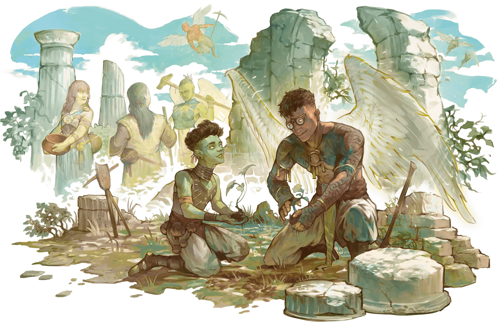Aasimar (pronounced AH-sih-mar) are mortals who carry a spark of the Upper Planes within their souls. Whether descended from an angelic being or infused with celestial power, they can fan that spark to bring light, healing, and heavenly fury.