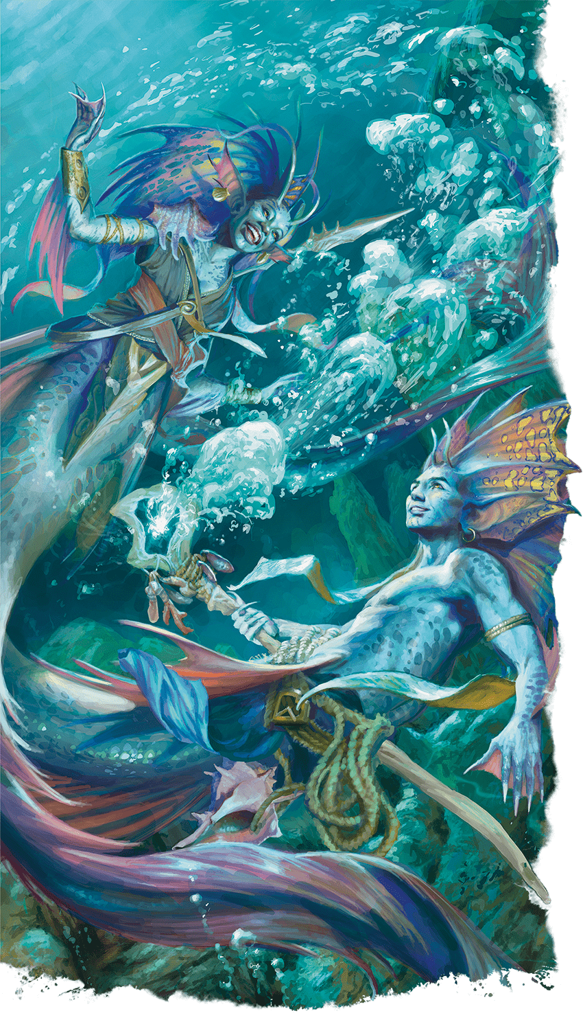 Beneath the waves dwell merfolk, mysterious creatures that merge the features of humans and sea creatures. Some are curious about land dwellers, while others view them with suspicion.