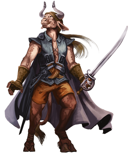 Minotaurs are barrel-chested humanoids with heads resembling those of bulls. Blessed with a supernaturally strong sense of direction, minotaurs make great navigators. Some sages believe minotaurs were first created by the Lady of Pain to patrol the magical mazes that she uses to trap her foes.