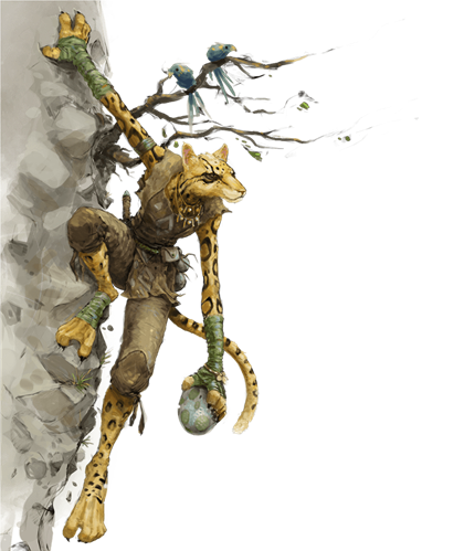 Created by the Cat Lord—a divine being of the Upper Planes—to blend the qualities of humanoids and cats, tabaxi are a varied people in both attitude and appearance. In some lands, tabaxi live like the cats they resemble, naturally curious and at home in playful environments. In other places, tabaxi live as other folk do, not exhibiting the feline behavior the Cat Lord intended.
