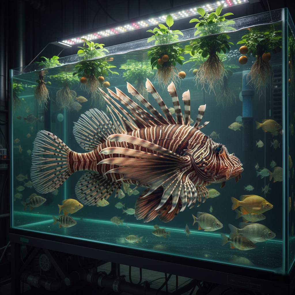 Lionfish are prestige carnivores, not required for system stability. They are slow-moving, visually striking, and deliberately inefficient from a protein-yield standpoint.