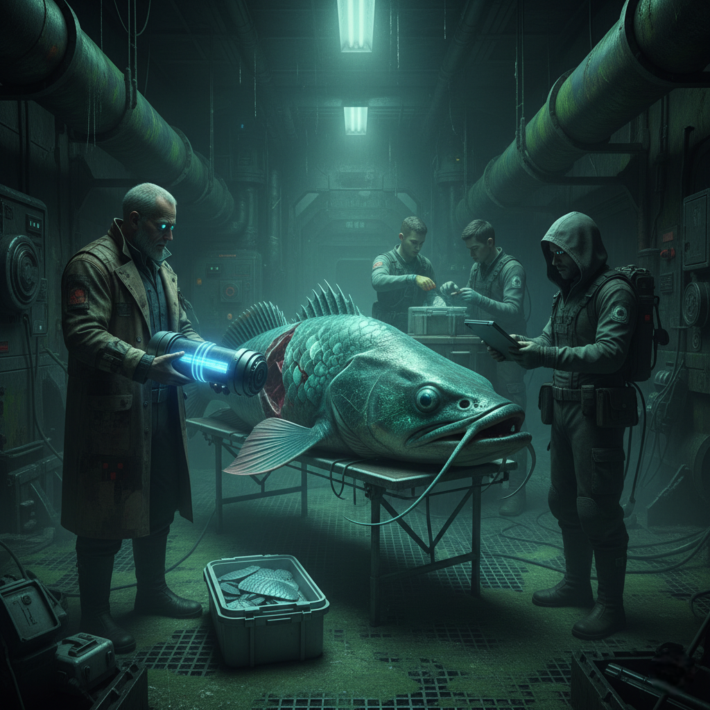 The greatest danger isn't the police; it's "The Bloom." If a lionfish or tarpon carcass isn't processed quickly, its gene-modified gut bacteria can escape into the drainage system, causing a massive algae bloom that can choke a sector’s oxygen supply in minutes. A smuggler who "spoils a pond" is fed to the very fish they were trying to smuggle.