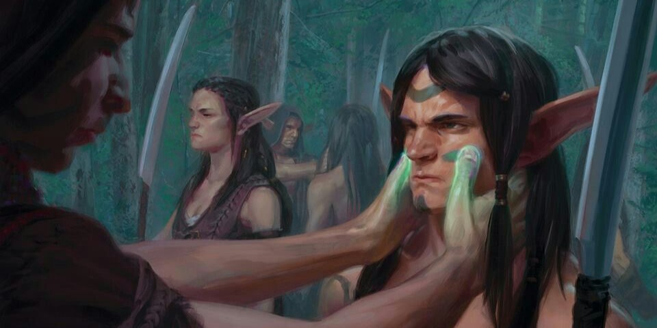 Nacque così il Culto degli Spiriti Selvaggi, un insieme di credenze sciamaniche che venerano bestie totemiche, forze primordiali e presenze invisibili che dimorano in foreste, fiumi e montagne. Per gli elfi selvaggi ogni creatura e fenomeno naturale possiede un’anima con cui entrare in comunione: le loro società si fondano su riti tribali, visioni sciamaniche e un forte legame con il territorio.