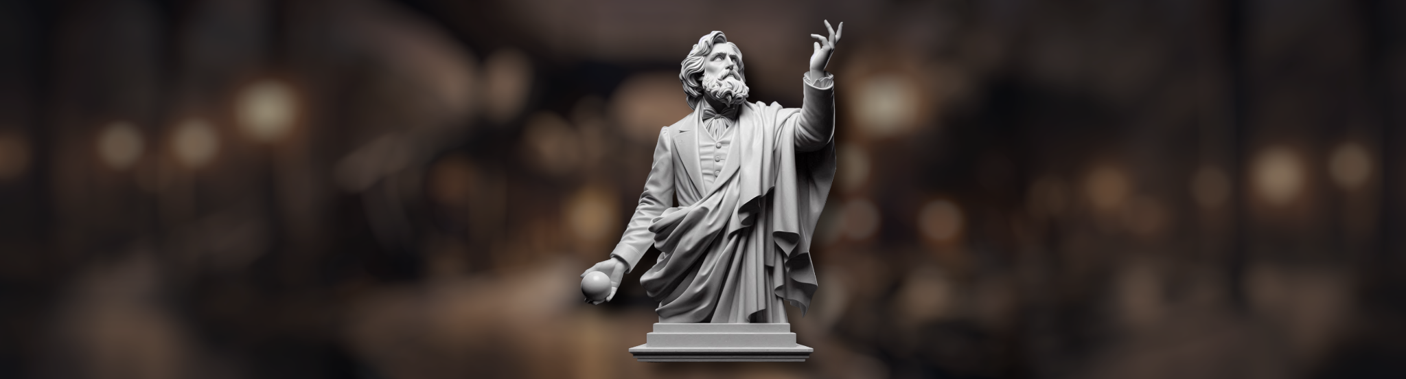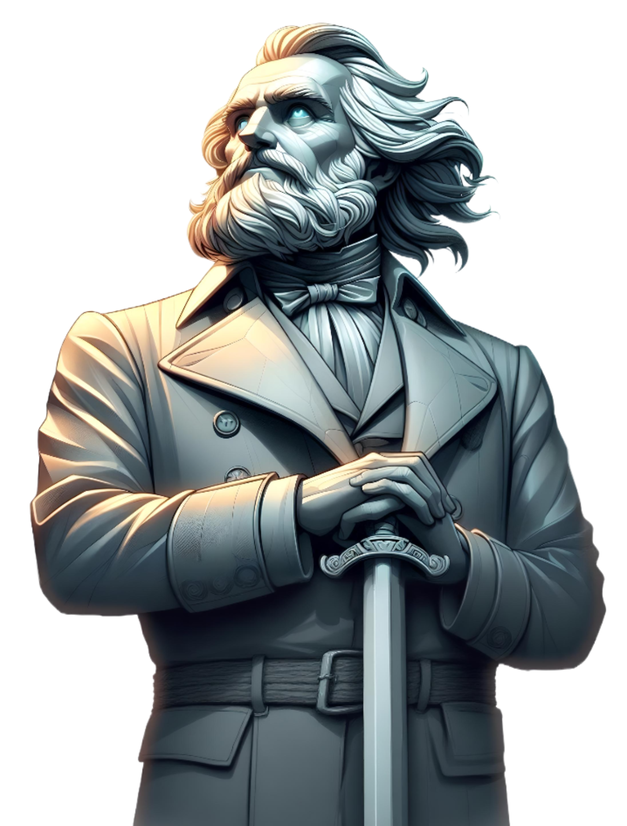 Early in Orphan’s history, atmospheric problems in the Expanse multiplied, as did temperature instability (which some called ‘winter’), and as happened whenever anything worth discussion arose, a symposium was called. Propositions from iron-skin houses to fashionable filtration suits were both considered and insulted. One geologist suggested geo-thermal drilling, because of course he did. This angered the Engineers, who reminded the symposium that no such drills existed and they didn’t want to be bothered to invent them. The punching began shortly after. Amid the ruckus, Cornelius Erasmus Hicker arose, cleared his throat, and proposed the construction of both an iron lattice and glass dome over Orphan Towne (which was rejected), and the Heuridium Tower, (which was loudly ridiculed). The math was beyond anything the whole of the Scholary could conjure; despair ensued. Later, while on his nightly constitutional, Hickter experienced a vision, in which reconciled algebraic formulae appeared atop a mountain, alongside a message: In hoc sine vinces, (“By this sine, conquer”). Hickter attributed the revelation to his own magnificent brain, since no observable cause could otherwise be located at the time. He arrived back at the symposium the following hour and declared not only the mathematical solutions to Orphan’s dome quandary, but also the advent of Hickter's Law: Nothing Unobservable Exists. The phrase and the mathematics so beguiled the scholars that a spontaneous parade erupted from the assembly, and Hickter was carried on the shoulders of the Scholars across Orphan amid shouts and clamour all the way to Bellamy Park, where a statue was commissioned, though it took fourteen years to complete and resulted in a readdressing of the pigeon breeding ordinances passed ten years prior. Heuridium and dome construction began the following day.