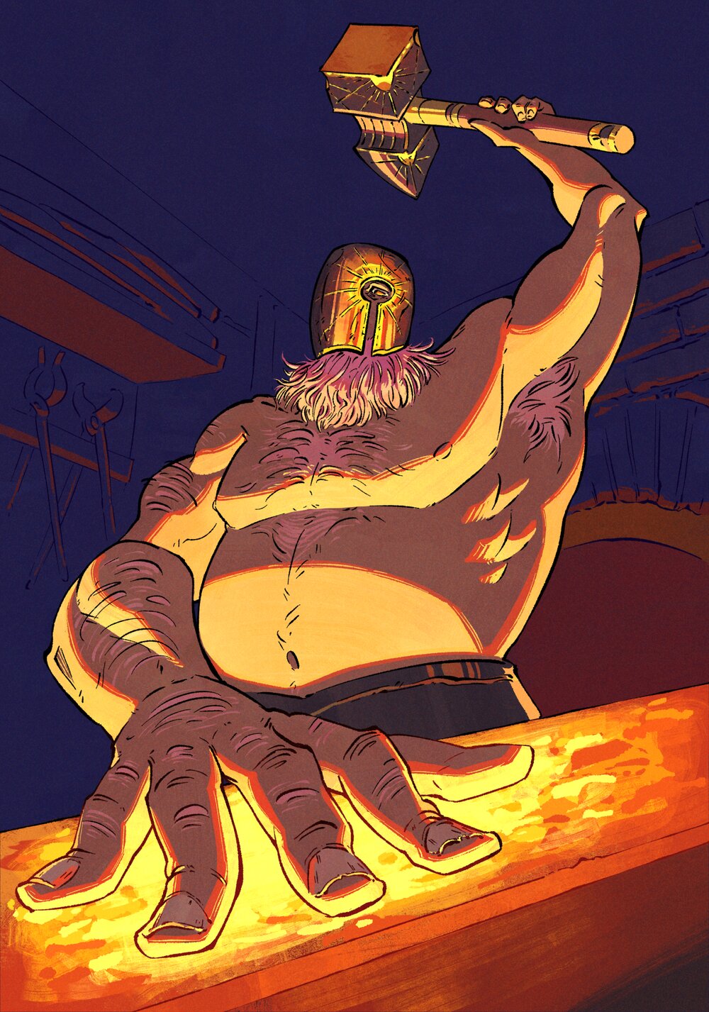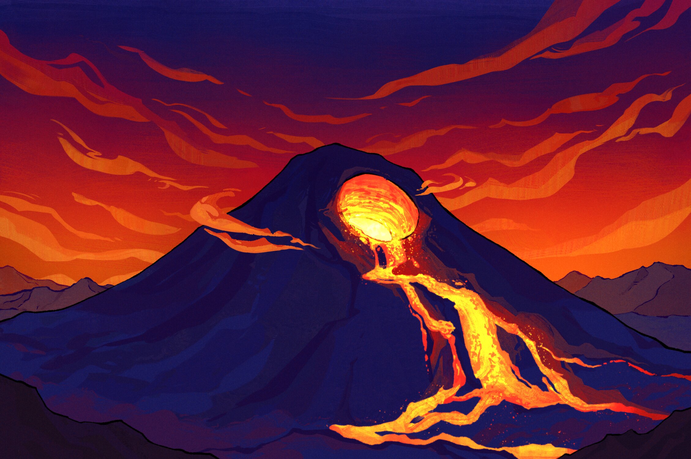 When Med'Hea descended on Ayonerra and began hindering Shemokmedi's plans, Otmar wished to join her efforts. He dove into the ocean and formed the Daruband Isles from his cooled body. The Tenth God raised a massive volcano around himself and let his molten body flow from its round crater. He then awaited promising blacksmiths to show him their worth, and someday craft a weapon able to slay the Sun. Soon, blacksmiths from all over Ayonerra learned of Otmar, and flocked Daruband to gain his approval. They called the volcano The Eye and built a buzzing community of smiths and artisans around it.A Sacrifice