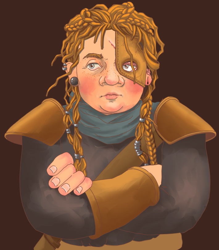 Bis 671 n.P war sie Leibwächterin von Olaf Fredinger, Alchemist, Heilkundler und Magister an der Gräfin-Willa-Schule für Heilkunde in Hafflingen. Dann ist er zu ihrer Schande leider verschwunden.