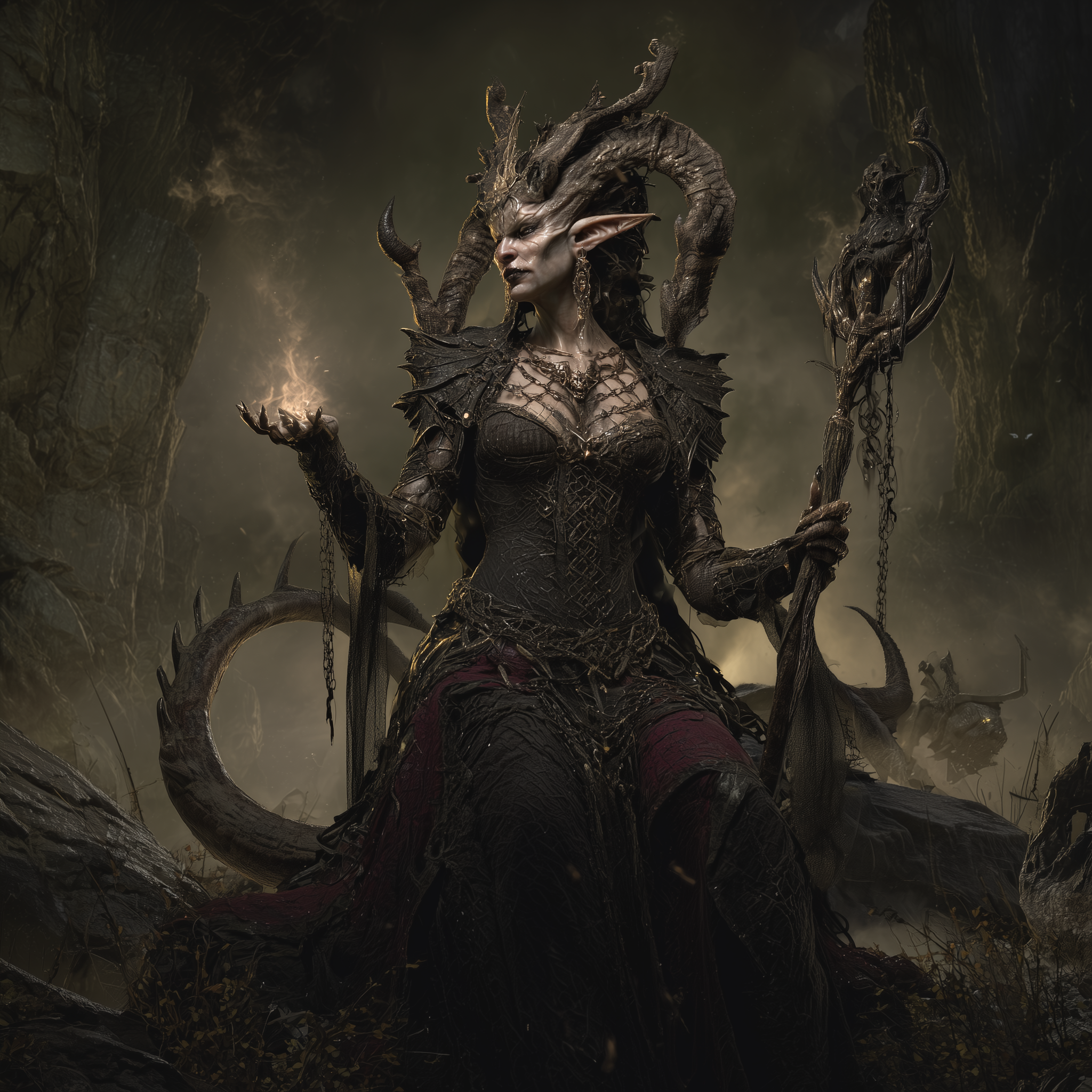 With her rise in power, significant numbers of fleshwarped Sklythernak have been encountered, suggesting she is not only leading the Slythernak forces in conquest, but designing her forces, removing previous weaknesses and building armies designed with the singular purpose of extermination of all other ancestries. Her known actions so far suggest that, although fanatical in her belief, she is a capable strategic leader. This can be seen in the areas of Sekamina and Nar-Voth, where she has taken control and employed tactics such as lightning raids, the sudden deployment of vast armies, and concerted efforts to fortify the areas now under her control. The discovery that she has a pact with one of the most capable fiends from the last three deamon wars, Dielbus, strongly suggests that the pact was not made with an individual she was unfamiliar with, but one she has carefully researched.