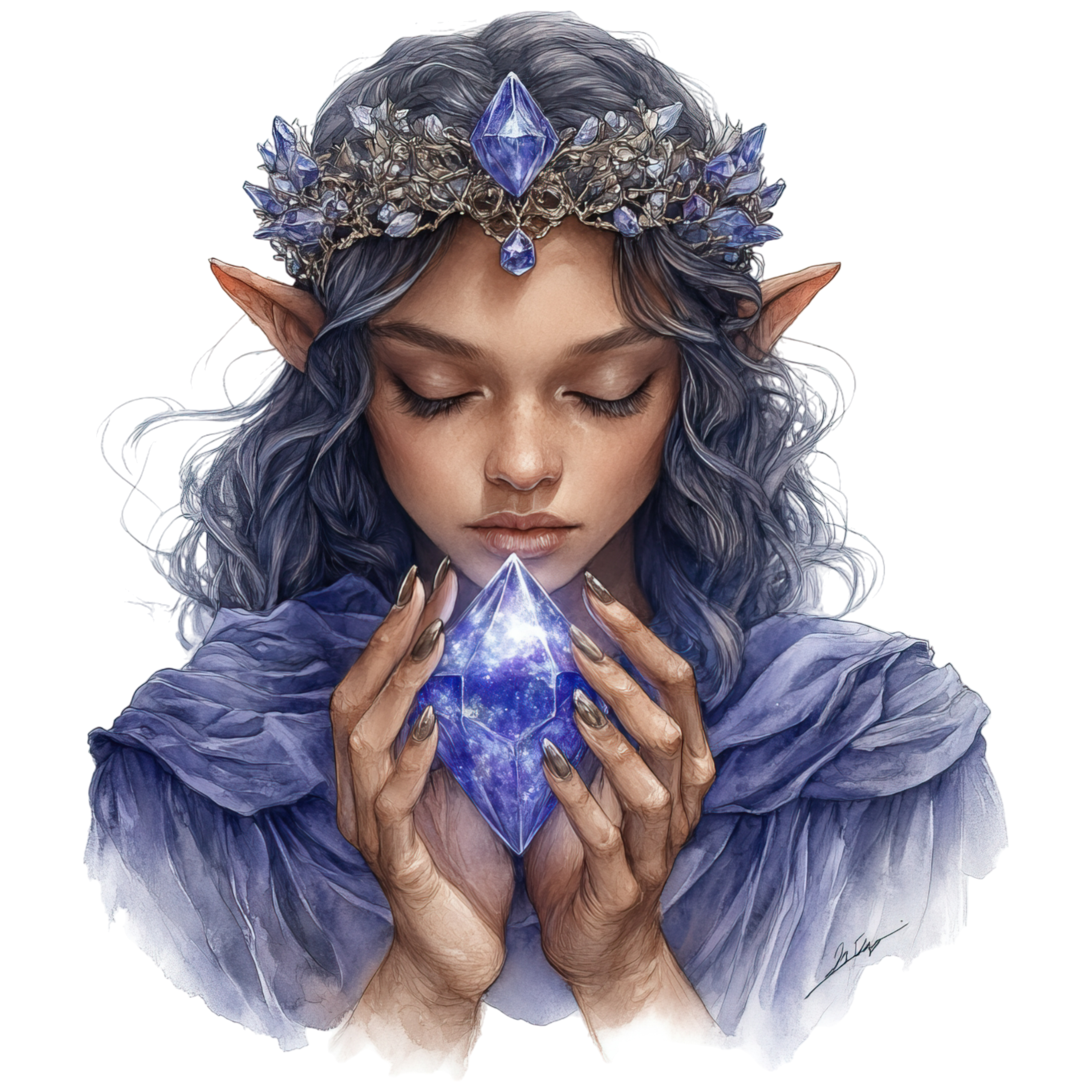 - Men: Leaders, scholars, warriors, and ward-weavers. They inherit the kingdom’s gemstone virtues (moonstone purity, malachite strength, amethyst wisdom, lapis wealth).