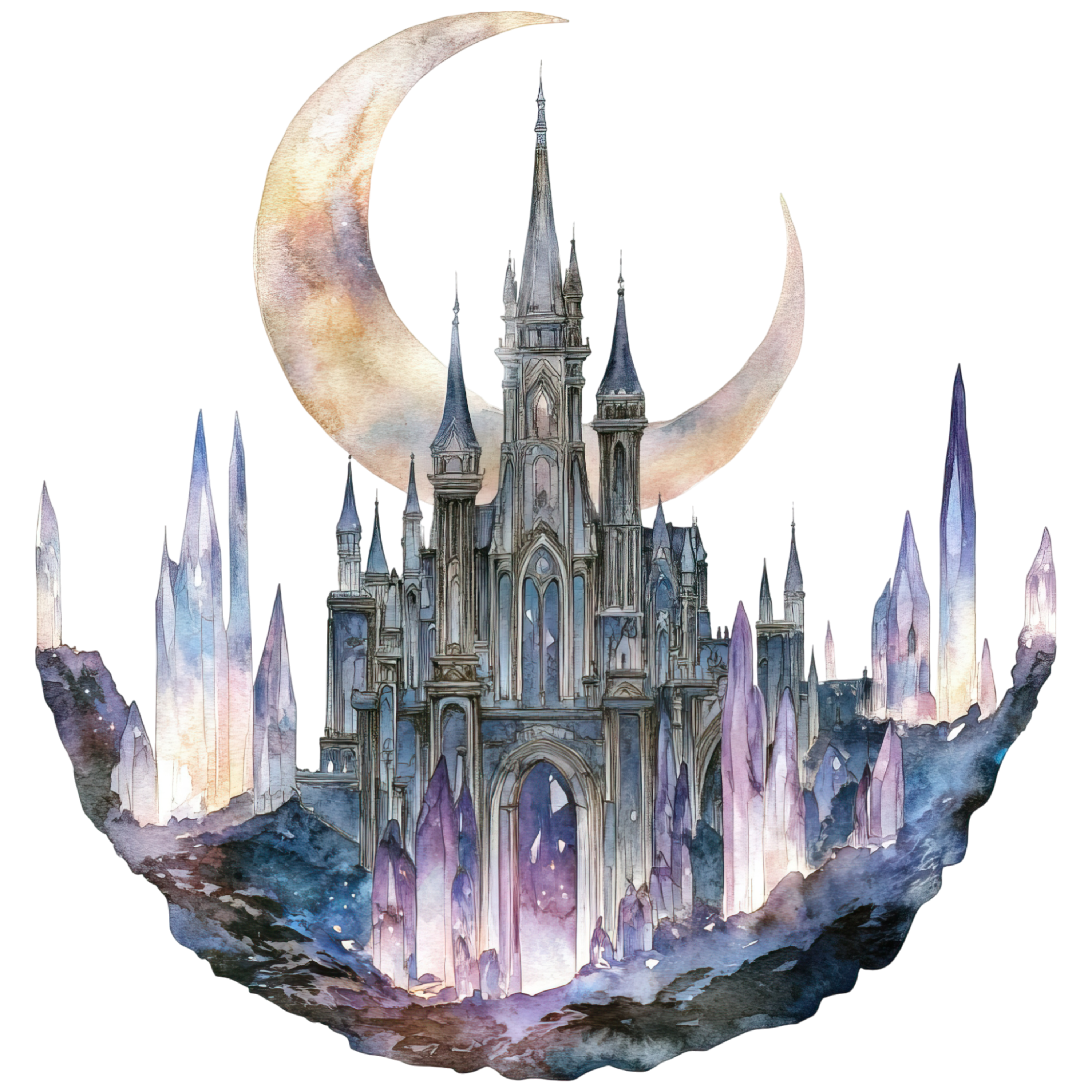 - Lunareth (Moonstone): White and silver structures glowing faintly under moonlight. Towers and arches are smooth, seamless, and symmetrical. Courtyards form perfect circles, often with fountains of luminous water.
