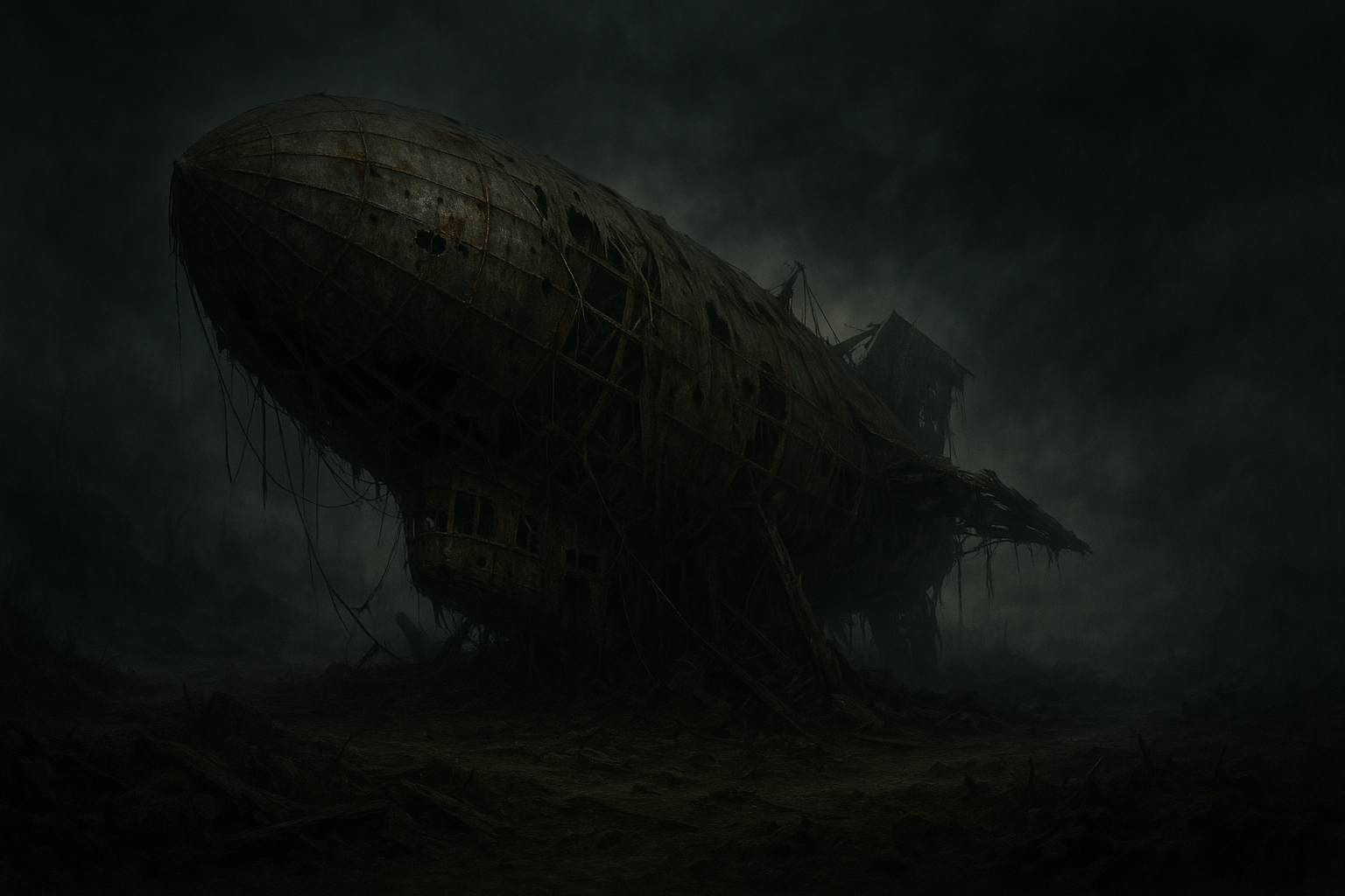 As the Blight came down nearly a thousand years ago, the remaining forces of the Becht armies made a hasty retreat, most not knowing if the end of times were upon them or not. The fettered Cloud was the last of the airships to take off and was caught in the ensuing maelstrom of negative energy and fire that the cataclysm caused. It crashed hard in the Western reaches and the husk of the once vast airship still remains, a twisted mass of brass, steel, rotting canvas, and old bones. Due to its location at the literal edge of the Blighted lands, no one would dare to attempt to recover the bodies of those lost. One hundred and thirteen Bechtlarite troops perished in that crash, and to this day, tales of a ghostly shadow of the Fettered Cloud and her crew are told in the border towns and amongst the drifters that brave the Wastes, brought back by the void to seek justice for their deaths upon the living that are unfortunate enough to get in their path.