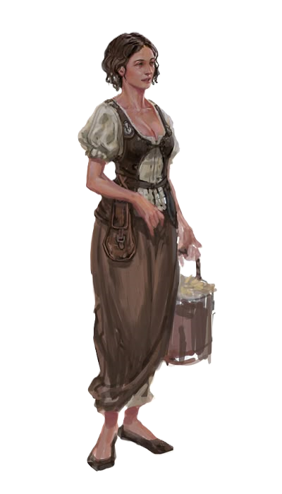 Contadina di Glenholme. Ha partorito un Tiefling. Ha accettato di sposare Zavic e di partire con lui per la capitale.