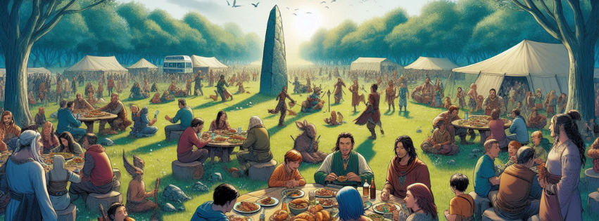 I quattro decidono poi di recarsi alla festa, organizzata presso un grande prato nei pressi della città. Come ogni festa che si rispetta sono stati anche preparati dei giochi di forza, destrezza e intelligenza. I personaggi non si tirano indietro e partecipano volentieri. Verso l'ora di pranzo fa il suo ingresso trionfale il Duca della Valle, Percival Ironwood. Il Signore della Valle di Dana è venuto per congratularsi personalmente con gli eroi di Glenholme e portare i ringraziamenti del Re, nella forma dell'insignimento nell'ordine dei Cavalieri del Grifone. Durante il banchetto, svariate delegazioni delle città e villaggi della valle passano in rassegna davanti al tavolo del Duca per portare personalmente le loro istanze. Thalendra chiederà a Percival se intende fermarsi per la benedizione del nuovo nato durante la celebrazione dell'equinozio. Dopo aver ricevuto l'assenso, Thalendra va a cercare Bryndis ma torna dopo pochi minuti, dicendo che la donna si è chiusa in casa e non intende uscire.