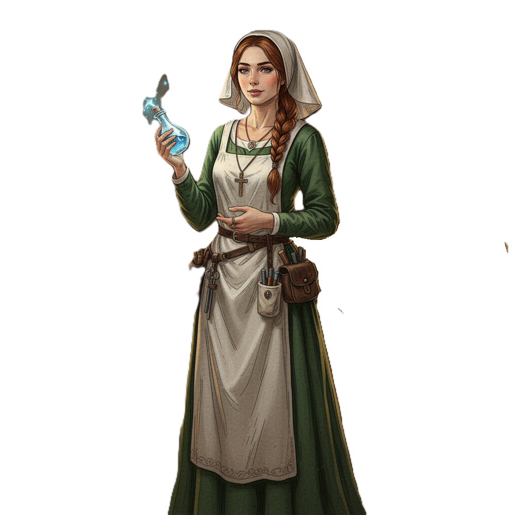 Infermiera, accompagna la spedizione di scavo di Zavic de Rideaux al Torrione di Kaldros. E' stata rapita da una strega della notte che si è spacciata per lei.