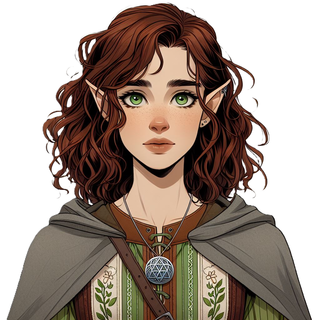 Nata dall’unione tra un marinaio umano e un’elfa silvana, Thalendra visse fin da piccola ai margini di due mondi. Cresciuta tra le acque quiete della Sorgente Sacra e i racconti tramandati da sua madre, accolita del Tempio, la giovane mezzelfa mostrò fin da piccola una sensibilità fuori dal comune per i presagi, gli astri e i sogni. Raccontava visioni che poi si avveravano, e vedeva eventi futuri nei riflessi dell’acqua o nei moti delle nuvole.