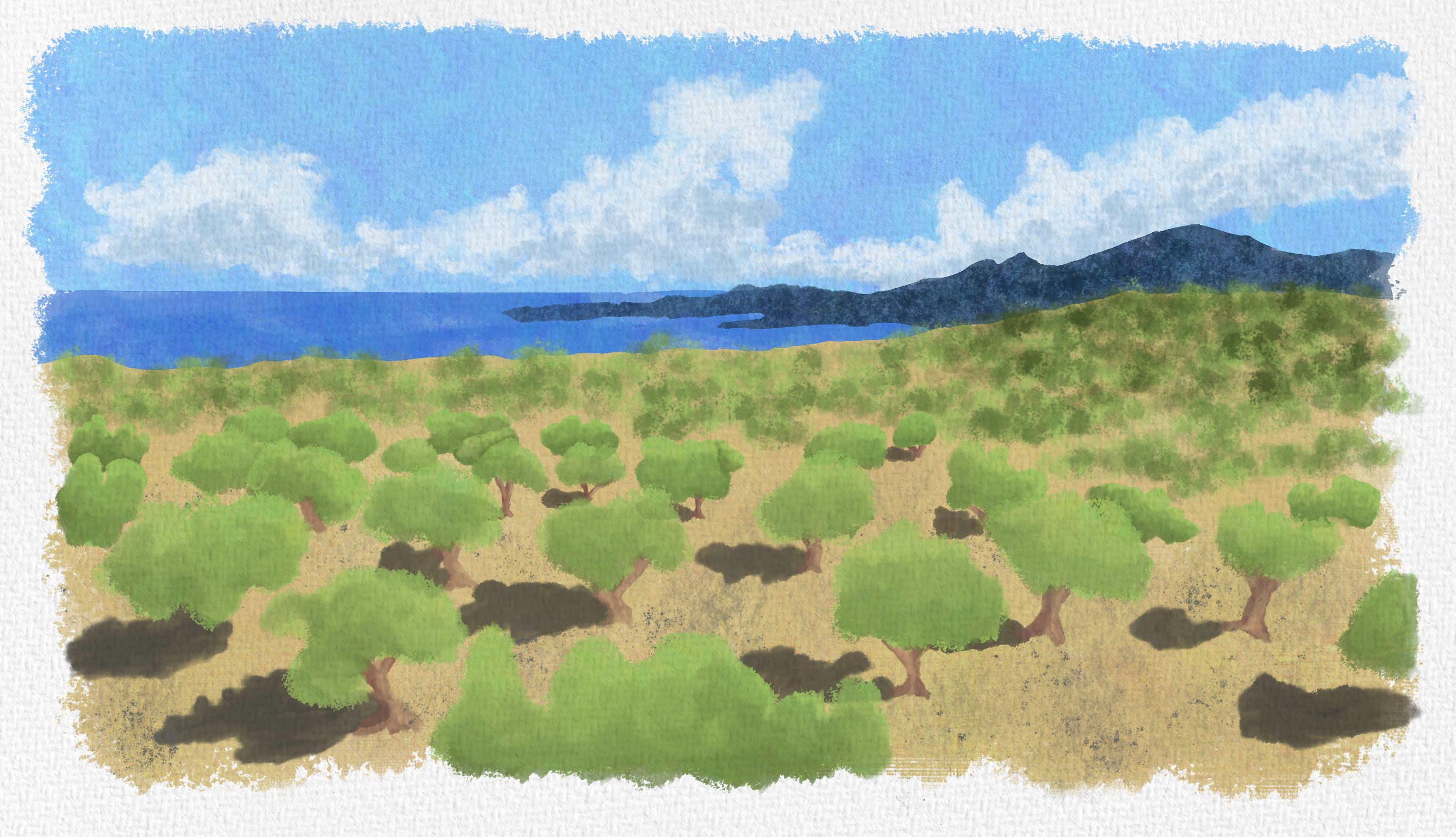 You have been riding for some time when you pass another of the many olive groves. To take a few photos, you get off your bike, unpack your camera and start looking for interesting motives. While you are taking another photo, an elderly man approaches you. Slowly, slightly bent over, but smiling, he comes towards you. You greet him politely with one of the few phrases you learned before your trip. Then he speaks to you in Greek, but unfortunately you don't understand what he wants from you. You look at him questioningly and shrug your shoulders. Just as you are about to leave, he suddenly continues speaking, turning half away from you but beckoning you to come closer. You take a step towards him and he continues in the direction he came from, steadily beckoning you. After a moment's hesitation, you decide to follow the old man.