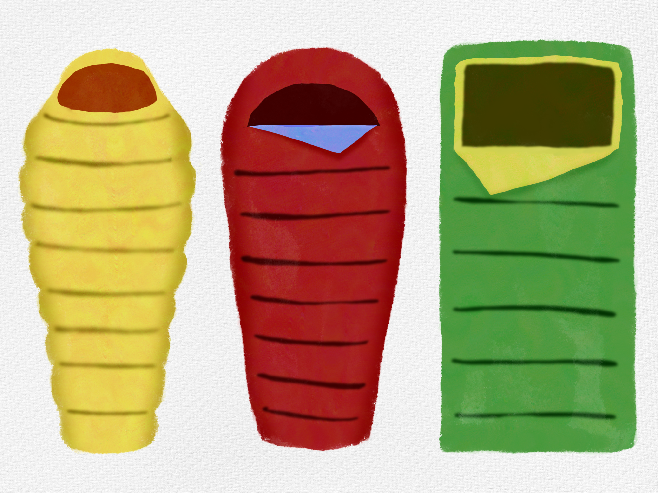 I love the sketches you are creating for this world :) It never occured to me there are as many as three variations of sleeping bags tbh. I always had one like the red in the middle of your image :) Btw, we are not getting a photo for the stickerbook with this one?