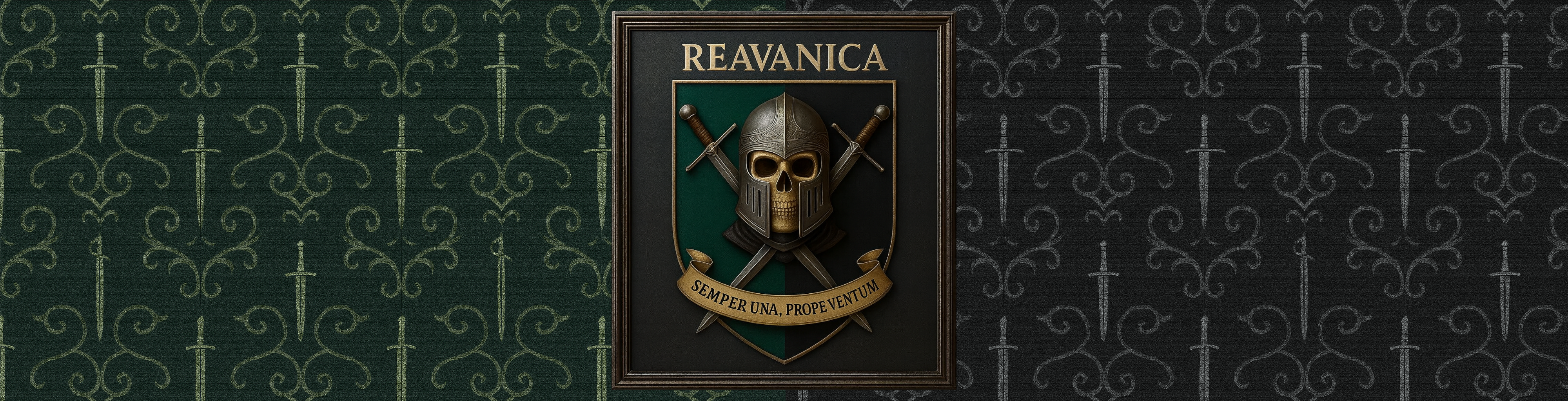 Das Wappen der Baronie Reavanica ist von dunkler, stolzer Strenge geprägt — ein Sinnbild für eine Grenzmark, die Härte, Widerstandskraft und Einigkeit über Generationen hinweg bewahren musste.