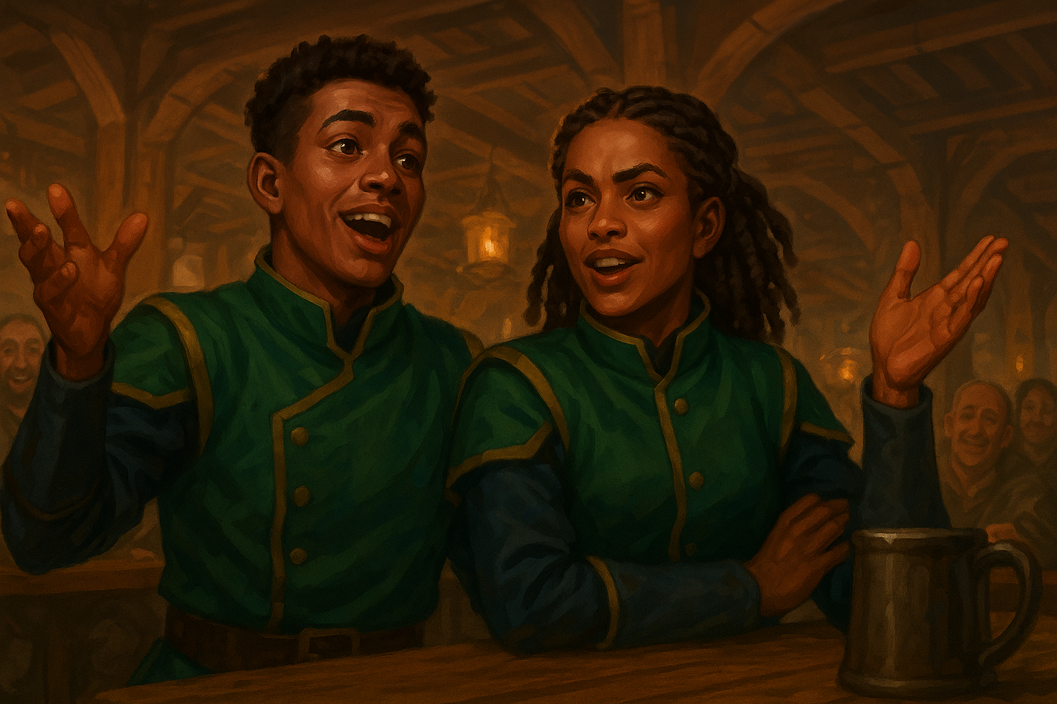 Beide traten der Mauerwacht bei, um ihrer Stadt zu dienen, doch sie begnügen sich nicht mit Routinepatrouillen. Immer wieder geraten sie in kleinere Heldentaten: Sie helfen bei Evakuierungen, stellen Diebe und bekämpfen lokale Bedrohungen mit Eifer. In Liskor sind sie längst als Lokalhelden bekannt, auch wenn ihre lautstarke Art und ihr Hang zum dramatischen Auftritt ihnen den Ruf von Möchtegern-Champions eingebracht haben.