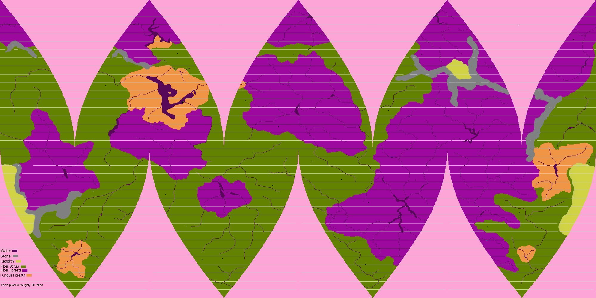 A little-known fact is that there is also a plant Otherout, but it has a breathable atmosphere and it “orbits” (it actually sits directly between them at the gravitational center) the twin red-dwarfs. It is a harsh planet with extensive radiation due to its close-proximity to the twin stars and is a very humid and warm planet, that is about 70% covered by thick jungles, with numerous small to modest sized bodies of water. The high levels of radiation cause strange mutations of the creatures and plants (evolution progresses much quicker on Otherout than on the other worlds of the Ærnth system).