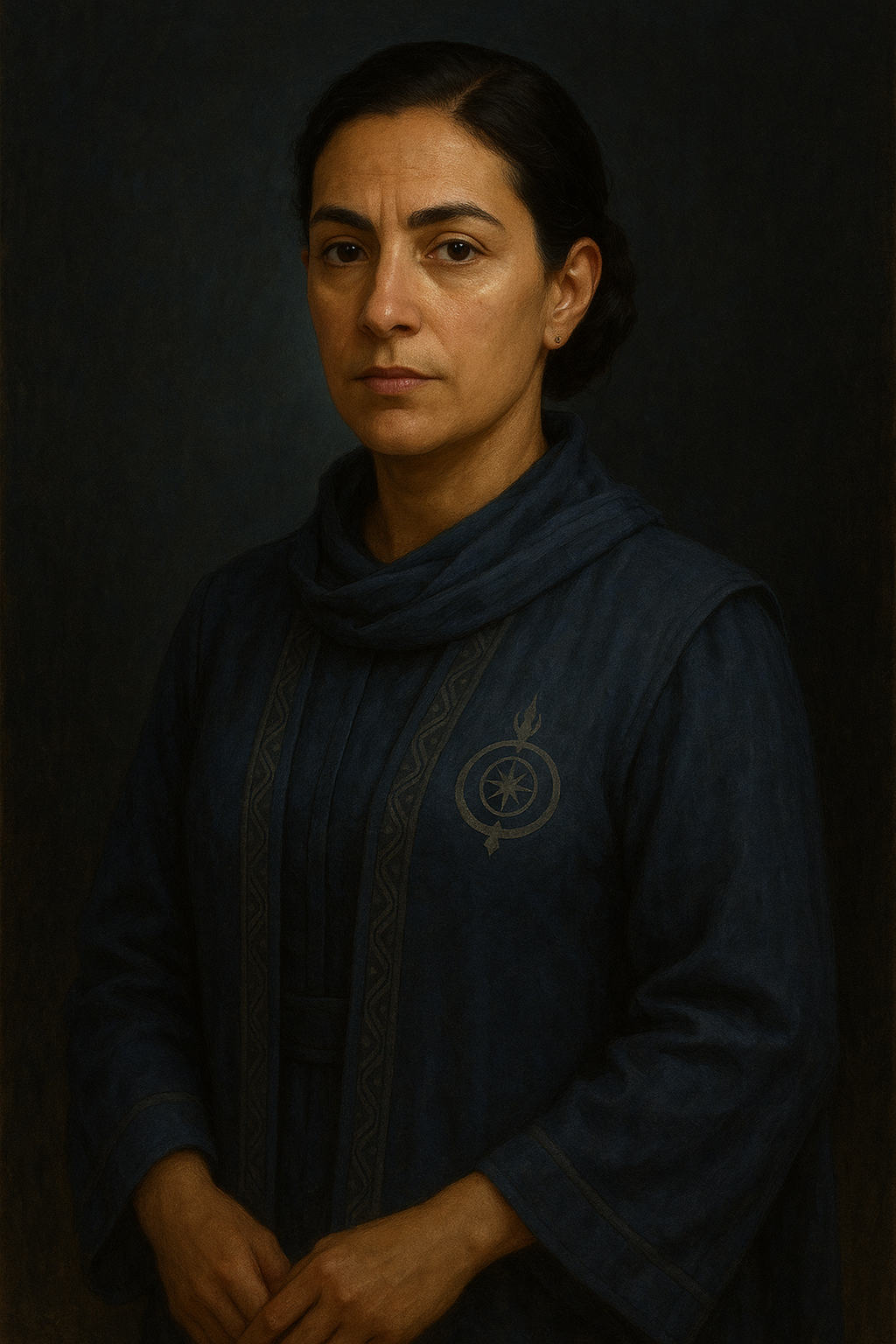 Dr. Amina Tarek wuchs auf Djachroum im Schatten der Hallen großen Hallen auf. Schon früh zeigte sie eine Begabung für Sprachen und das Verständnis komplexer religiöser wie politischer Texte. Nach Studien in Theologie und Philosophie trat sie als junge Dozentin innerhalb der Akademie der Coriolis auf, bevor sie von vertretern der Kirche selbst rekrutiert wurde. Ihre Laufbahn führte sie in zahlreiche Konfliktgebiete des Dritten Horizontes, wo sie als Vermittlerin zwischen verfeindeten Fraktionen agierte. Ihre ruhige Stimme und ihr unerschütterlicher Wille, Frieden zu wahren, machten sie zu einer respektierten Diplomatin.