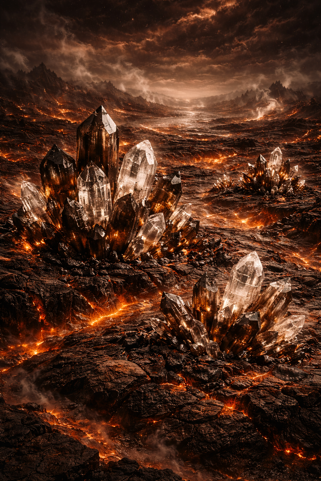 Die klebrigen Partikel gehören von ihrer Haftfähigkeit zu Teer und können mit Öligen substanzen abgewiesen werden. Überall auf dem Planeten wachsen Kristalle mit unbekannten Eigenschaften. Sie scheinen nicht von der klebrigen Teerartigen Substanz auf dem Planeten betroffen zu sein und wachsen nur auf dem harten Boden - den Schollen - des Planeten. Die wenigsten sind höher als einen Meter.