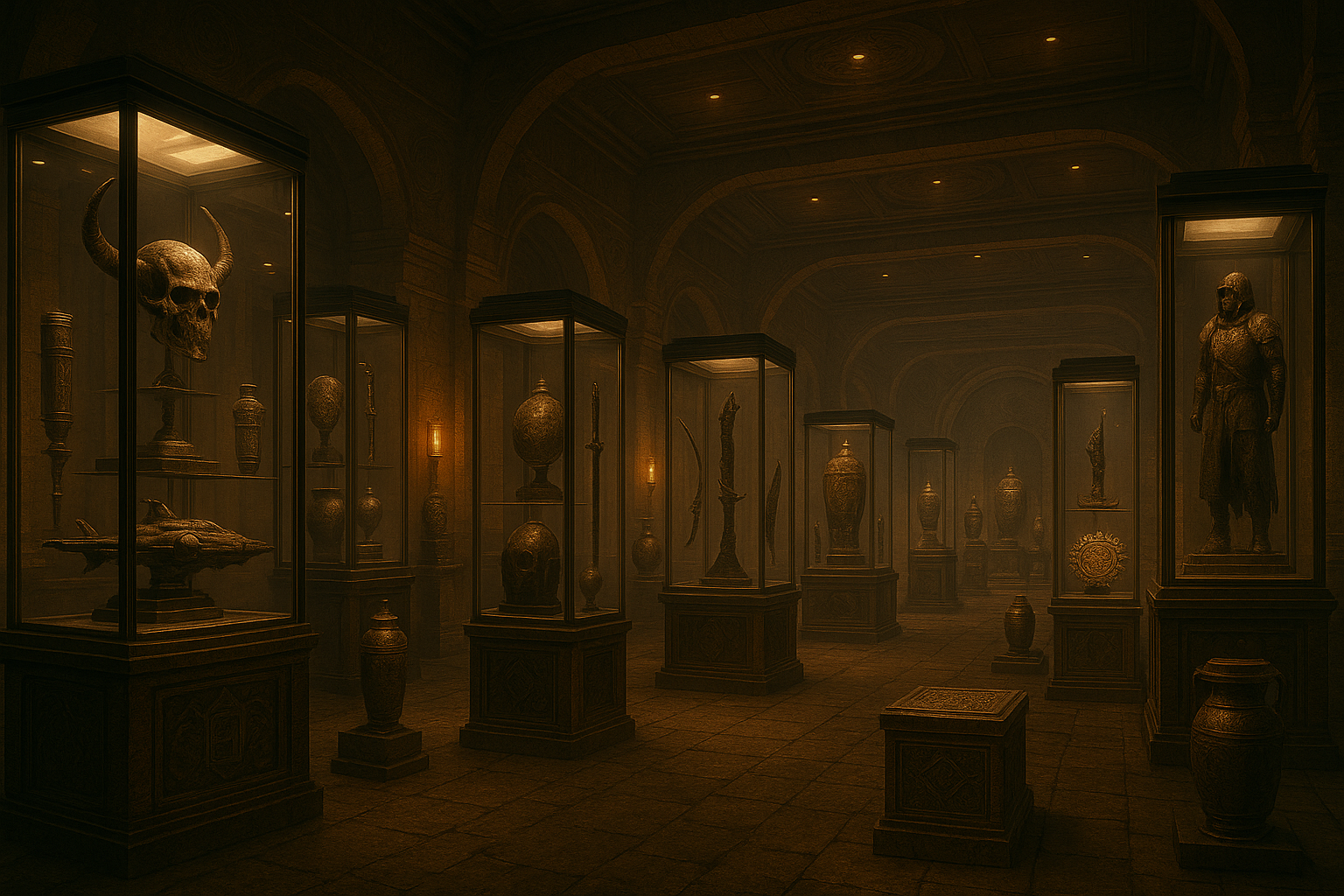 Von seinen unzähligen Reisen nahm er stets Andenken und Trophäen mit, die er tief unter der oberfläche der Maschinenwelt Journey's End - mehr für sich selbst als für Besucher - ausstellt. Hier befinden sich unzählige technologische Wunder und skurile Relikte aus der gesamten Galaxy.