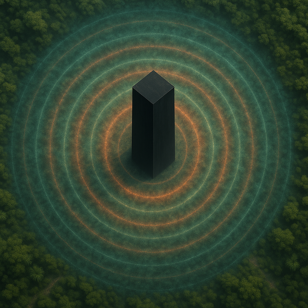 Das bis in die Wolken ragende Bauwerk ist mit seiner schwarzen matten Oberfläche weit in das Land hinein sichtbar. Anders als der Monolith auf Kua ist dieser von einem merkwürdigen Feld mit ähnlichen eigenschaften wie starken Mikrowellen umgeben. Wer sich dem Bauwerk nähert, erfährt neben Kopfschmerzen und Nasenbluten bald die Ohnmacht oder sogar den Tod. Technik, die das Feld betritt erleidet Fehlfunktionen bis hin zu totalen ausfällen.