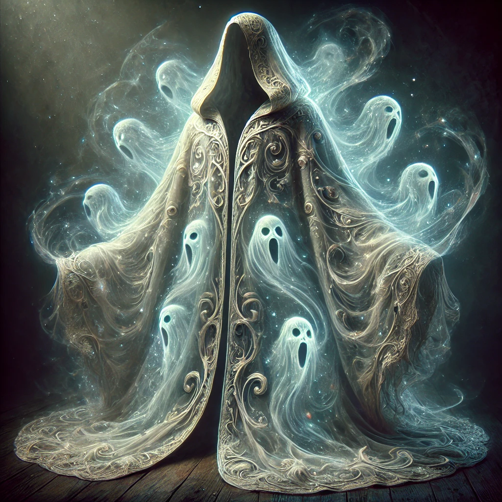 The Shroud of Insanity is a faint, otherworldly cloak that distorts reality around it. Faces and forms swim within its translucent folds, whispering barely audible warnings and nonsensical phrases.