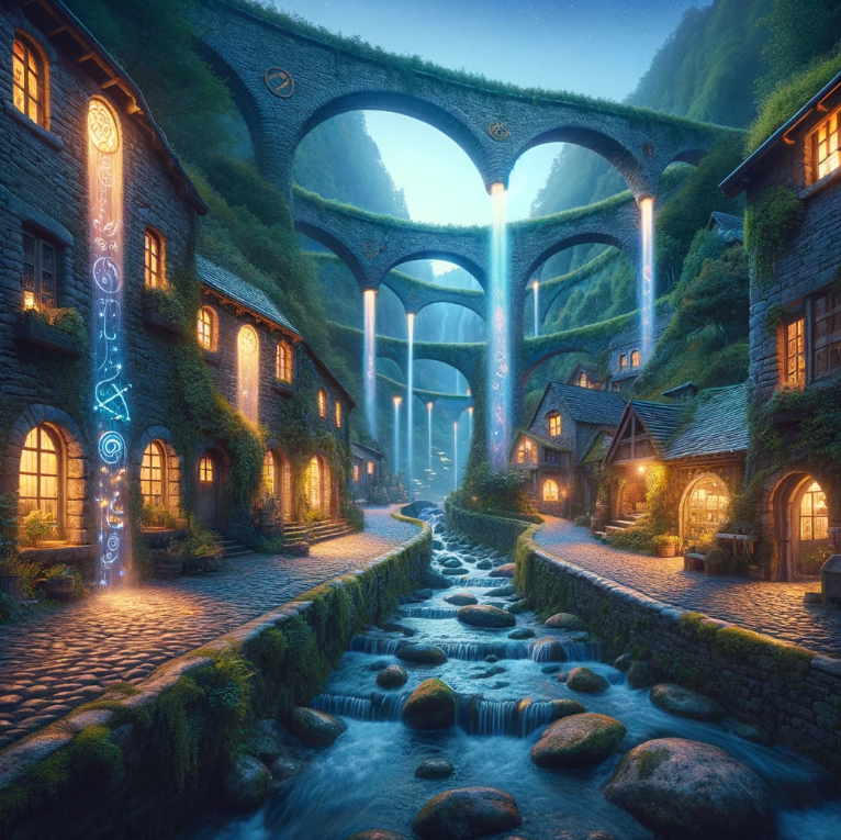 A massive, moss-veined bridge that predates all known records. Its runes change subtly over time, seemingly in response to who walks beneath it. It is whispered that the bridge “remembers every footfall.”