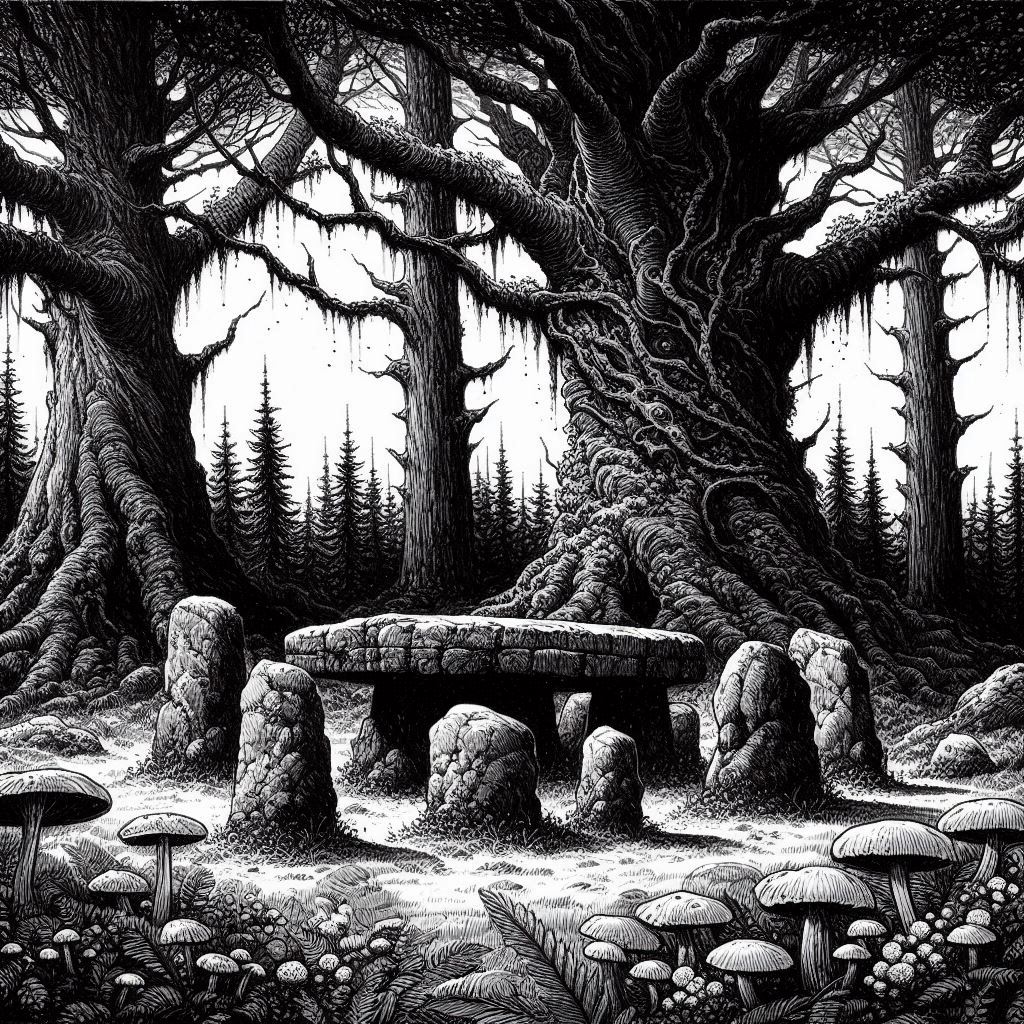The Ringstone Thicket is a strand of Ancient forest that is on the north edge of the Ravenwall Peaks and south of the Winsell Mires. Fey spirits are said to live in these woods as well as tribes of Goblin and Bugbear, along with animal wildlife. The Thicket gets its name from two ancient stone circles within its boundaries.