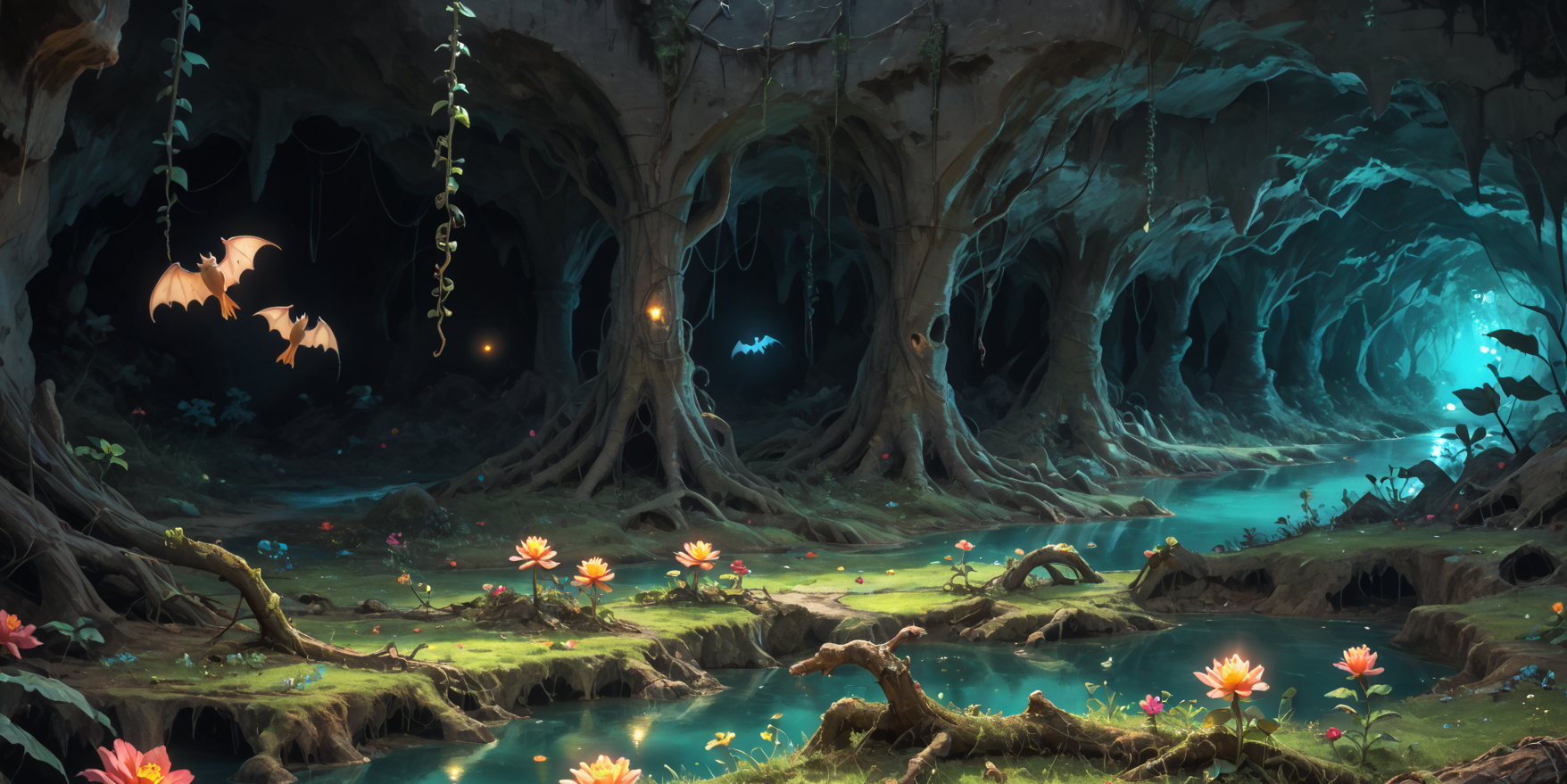This means the caverns are immense, with high ceilings and deep underground lakes. There is also a great deal of flora, even underground forests in areas, fed by openings in the cave ceilings that let in the light.