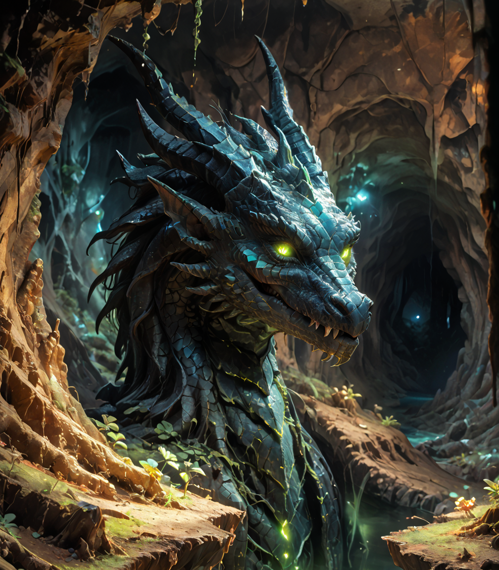The majority of the caverns were carved out of the sky island's ground by Elementalists millennia in the past. As such there is a certain designed feel to them, with physical features that would not typically co-exist commonly. Generally, it is designed to be exceptionally beautiful, and exceptionally large - large enough for many actual full-sized dragons to coexist with minimal conflict between them.