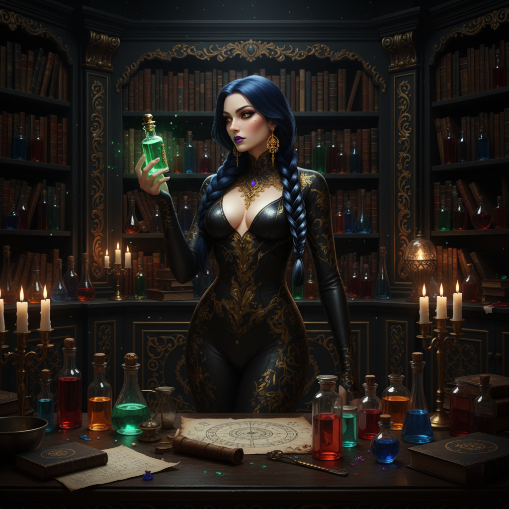 ElementalIsis does have a Dumen affinity for water and Modu affinity for Earth which, together, arrives at a Vaham affinity for poisons. This was not immediately evident - Isis learned to wrap water and earth together to create the toxic effect during her self-education on the topic. This permits her to infuse poison into her touch, transfigure other liquids into poisons. Most importantly for her use case, combining this affinity with her enchantment magical affinity allows her to create her many fantastical elixirs of horror and dread!