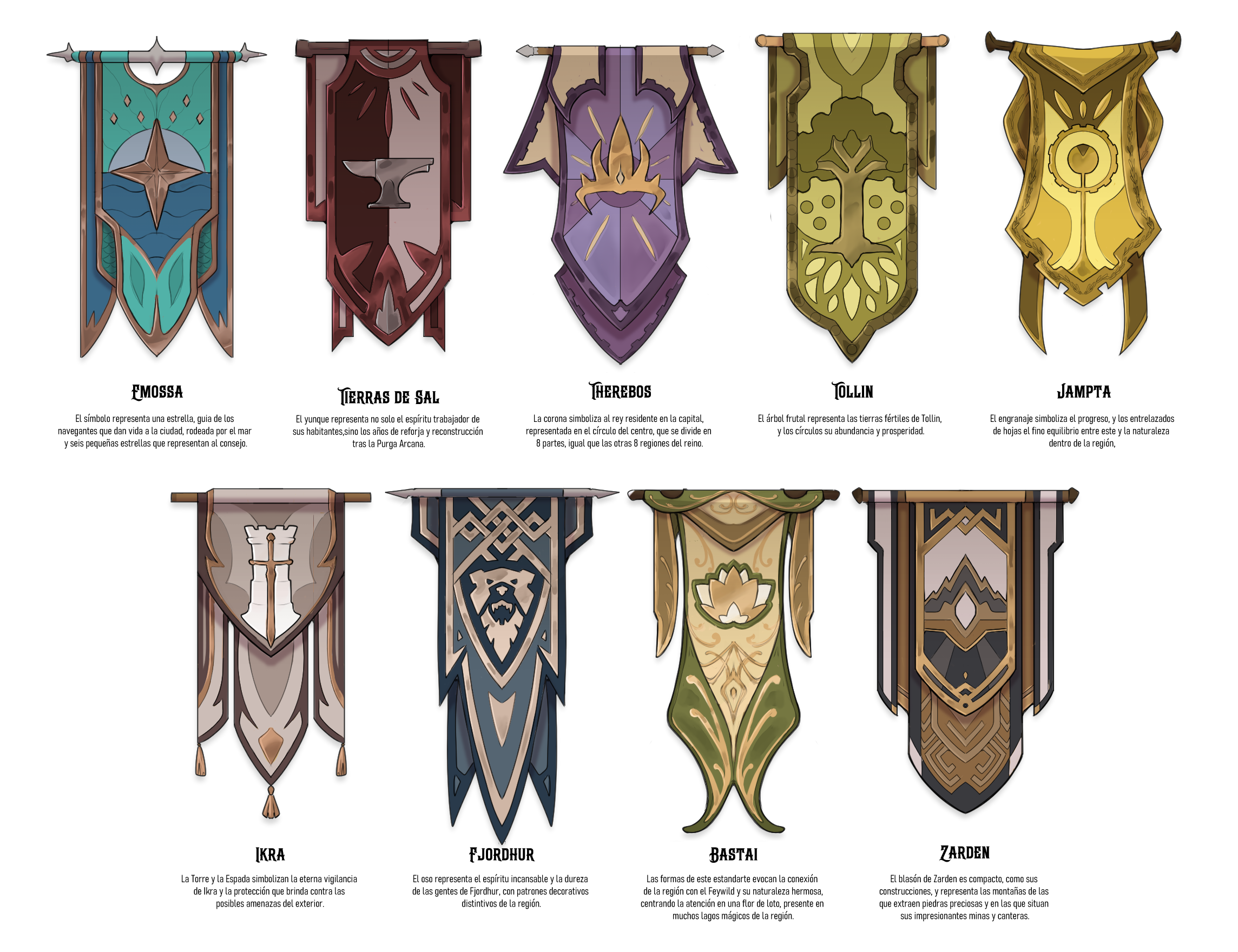 Zarden destaca como la región de los maestros constructores, arquitectos y escultores. La maestría de sus habitantes en mampostería es incomparable, y sus estructuras demármol y piedras nobles son maravillas de la artesanía. Los artesanos de Zarden contribuyen no sólo a la infraestructura del reino sino también a su riqueza cultural, creando monumentos duraderos que son un testimonio de su habilidad.Habitantes- Genasi, Enanos