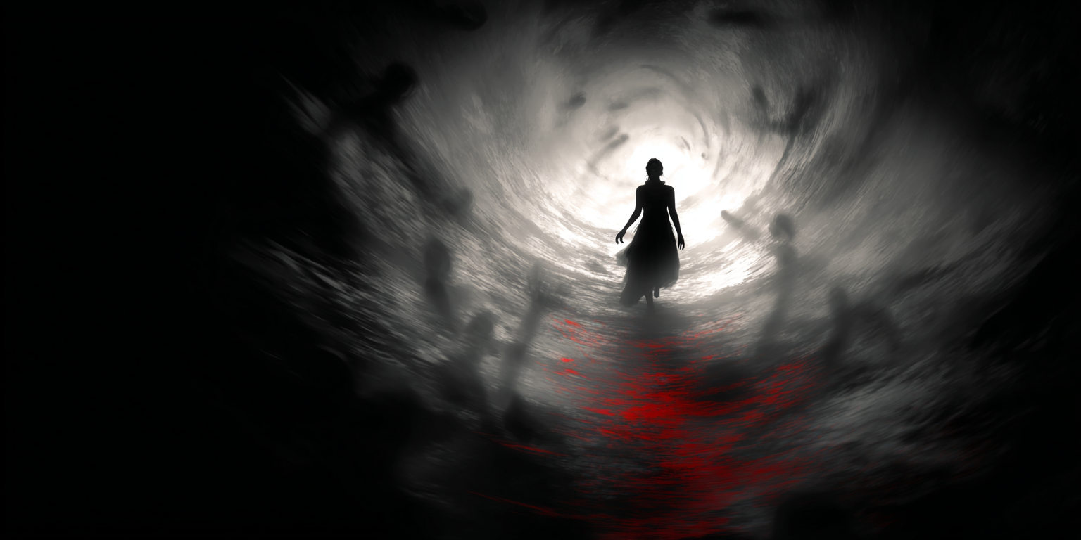 That is all she craves. Redemption, by any means, in any form. Yet the darkness angers at the thought, growing blacker, heavier, swallowing her wish. Perhaps she has already died. Perhaps Hell is not fire and cauldrons at all, but something far more absolute.