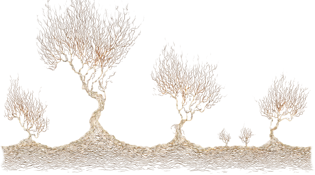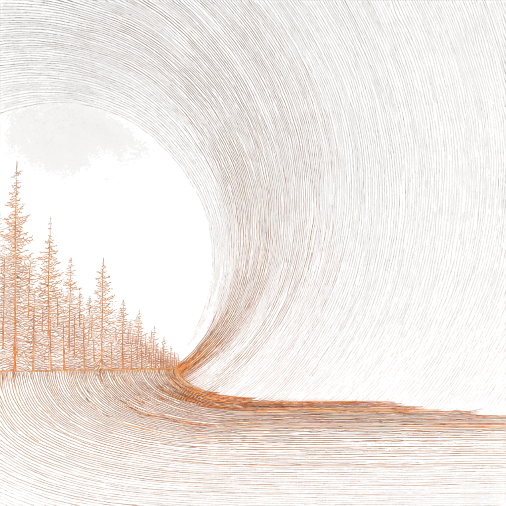- Petrified trunks warped into non-Euclidean spirals