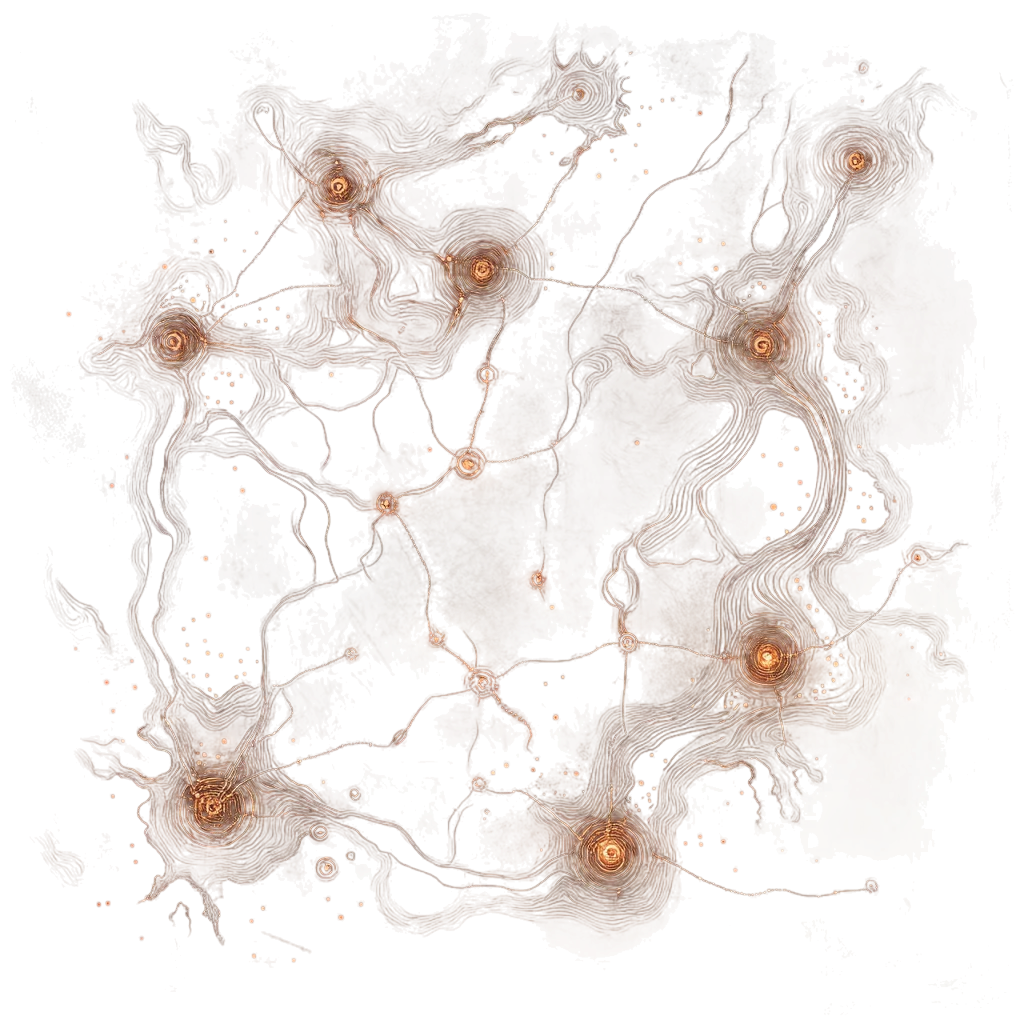 Those who claim to have seen it speak of veins glowing faintly with silver and brass light, like something alive and remembering. Its surface pulses softly, reshaping itself with each shift in the world’s Aether flow. Most agree on one thing: it shows a vast, tangled web of paths converging on brilliant nodes known as Nexuses - the places where the paths meet and the Veil is thinnest.