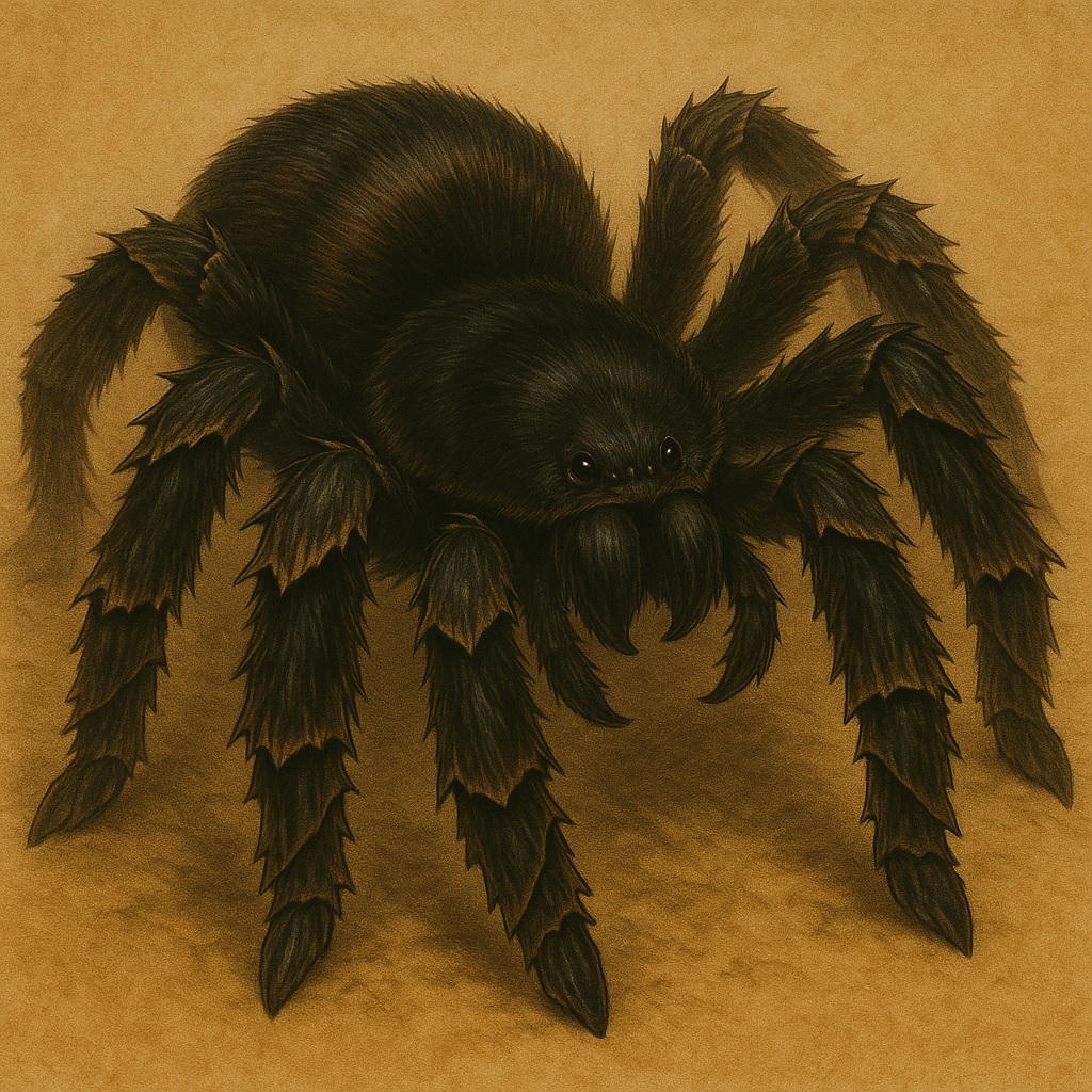 Une araignée-lame mesure environ 4m de diamètre. Son corps noir est couvert d'une fourrure lisse et brillante, marbrée de brun. Ses pattes présentent des plaques chitineuses aux arêtes saillantes et acérées, qui coupent comme des épées (d'où son nom). Elle est dotée de cinq yeux, trois petits au centre et deux plus gros sur les côtés.