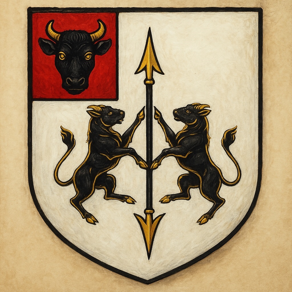 Caledria arbore l'auroch d'or impérial en insigne et dédoublé (quoique sans ailes) autour d'une lance à deux fers. Le symbole souligne l'importance du travail des forges dans cette satrapie.Histoire