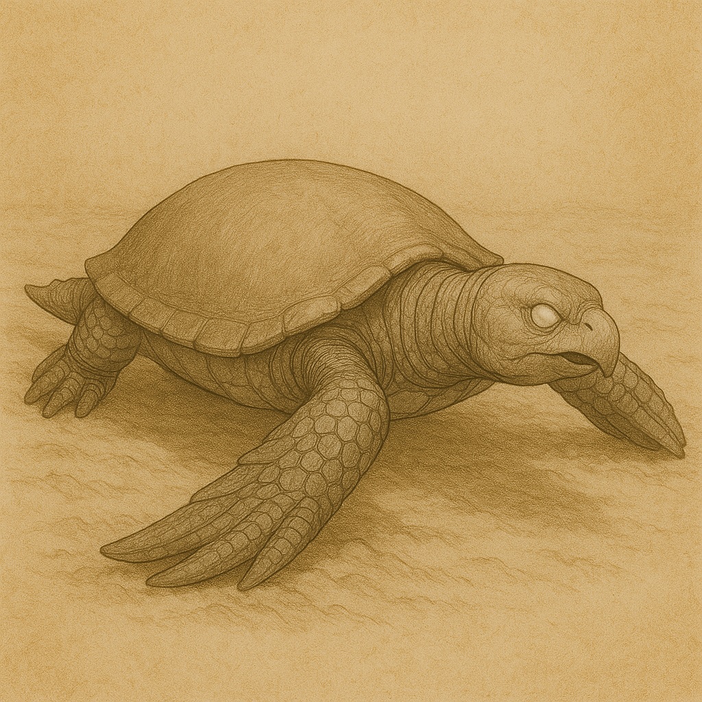Une carapre adulte mesure plus de 3 m de long et jusqu’à 4 m 20 d’envergure. Elle possède un bec puissant, dépourvu de dents. Ses yeux sont protégés par une épaisse membrane. Ses très longues pattes avant se terminent par des doigts soudés, formant des sortes de palettes.